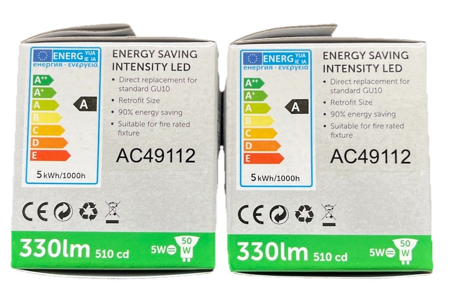 2 Pack Of Bell 5W =50W GU10 LED 2700K Warm White Halo Non Dim Spotlights