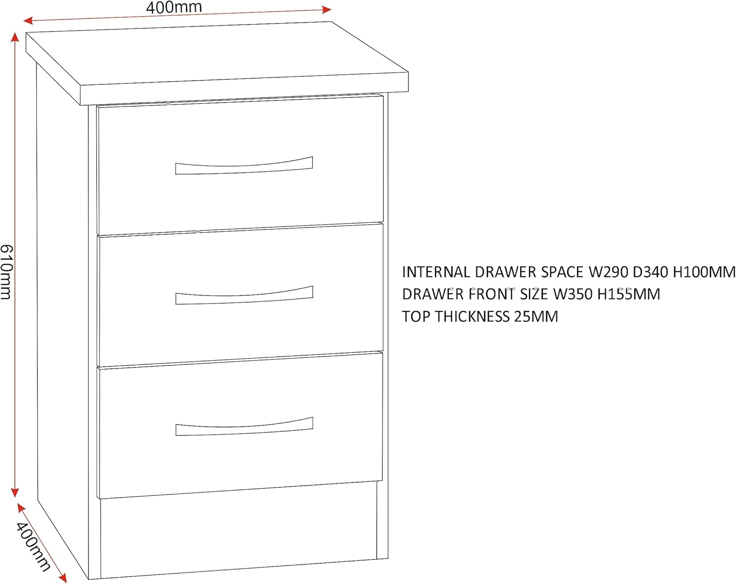 Seconique Nevada 3 Drawer Bedside Black One Size