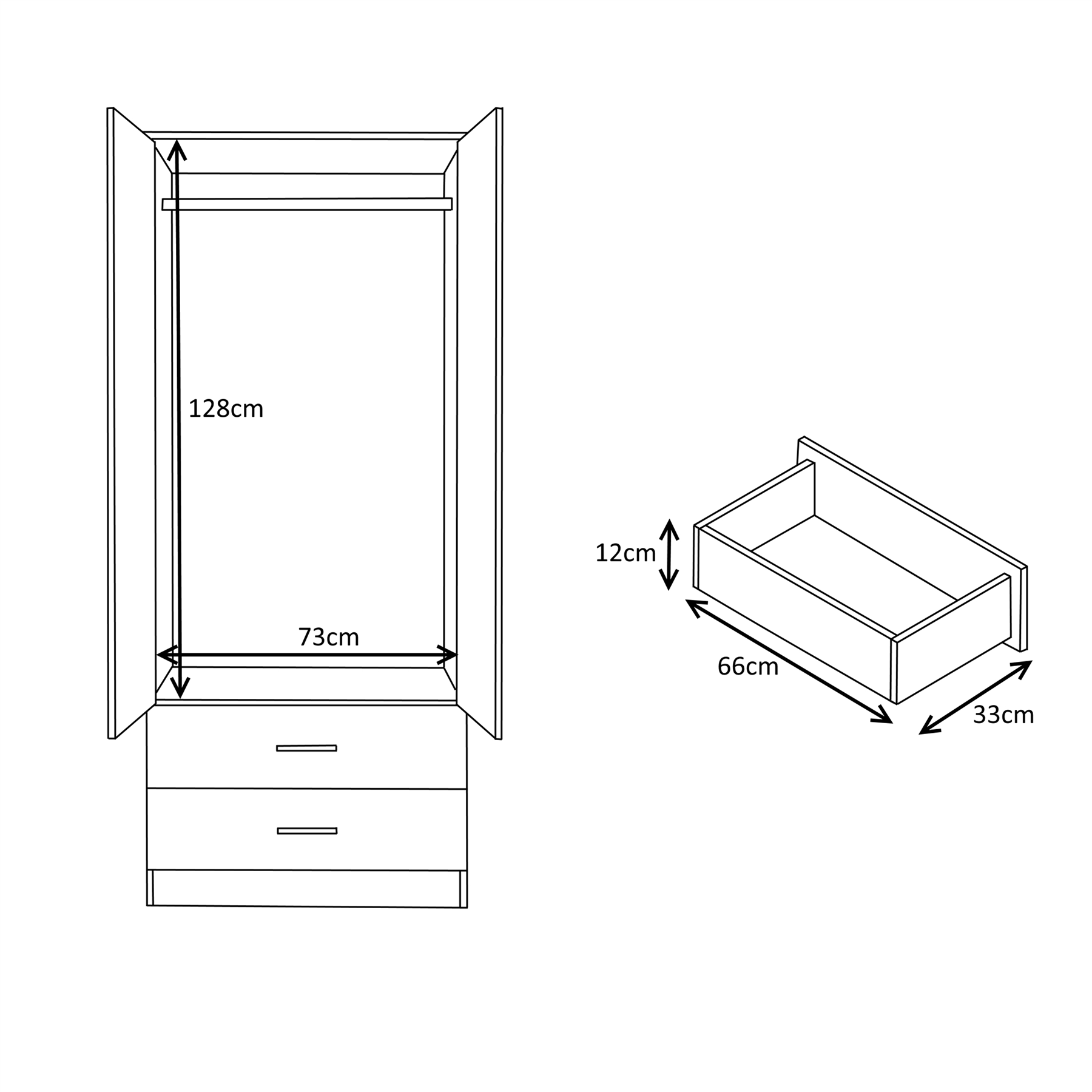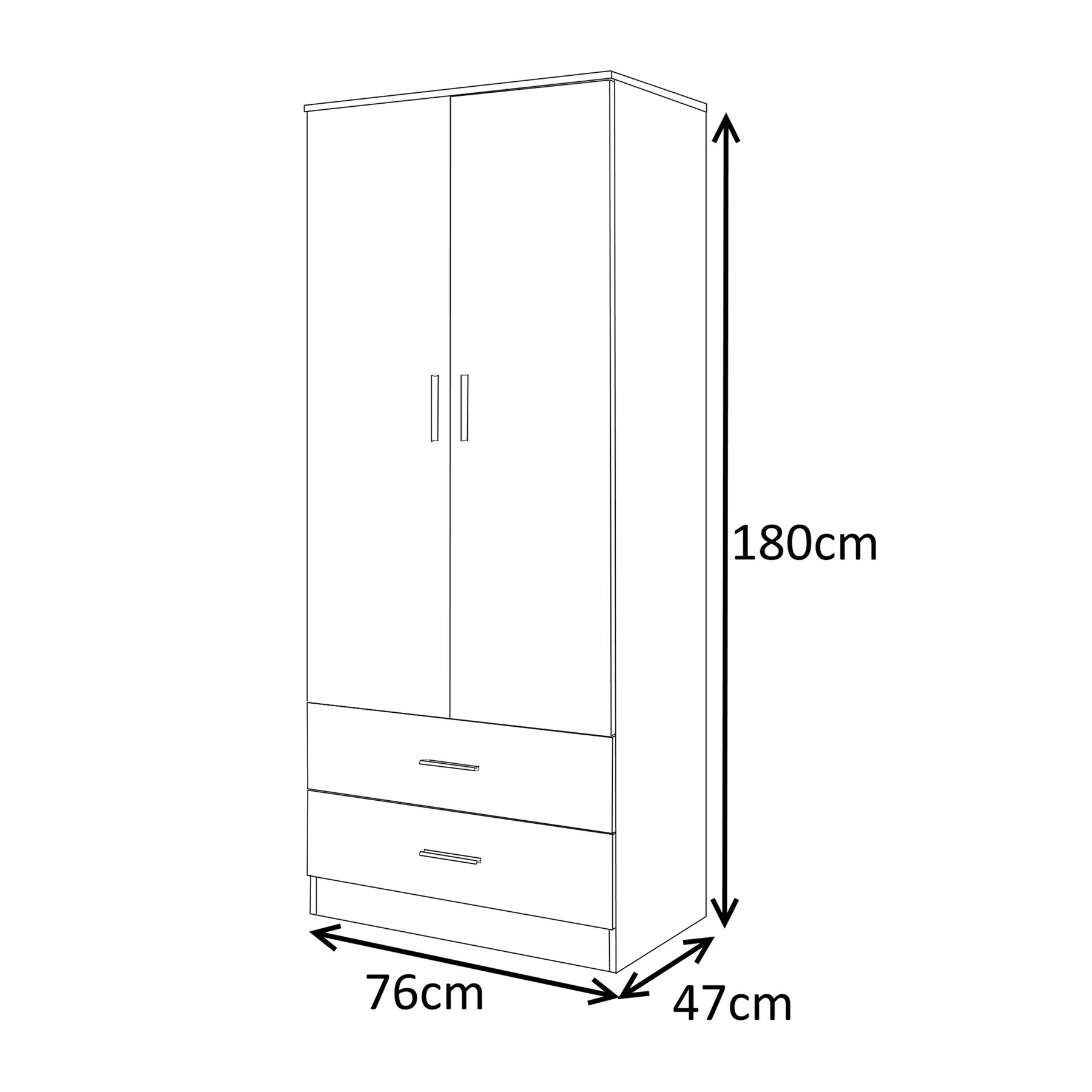 2 Drawer Bedside: Height: 48.5cm x Width: 45cm x Depth: 39.5cm. 3 Drawer Bedside: Height: 59.5cm x Weight: 38cm x Depth: 39.5cm. With its clean simple design and rich high gloss finish, this set will blend in seamlessly with any modern bedroom.