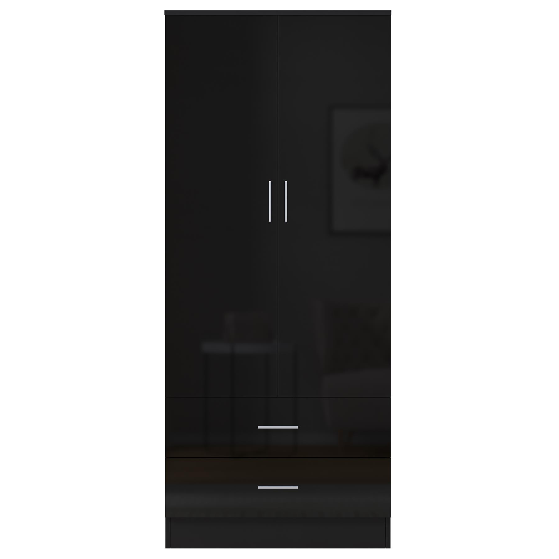 REFLECT High Gloss Bedroom Furniture Wardrobe Chest Bedside Desk Option in Black