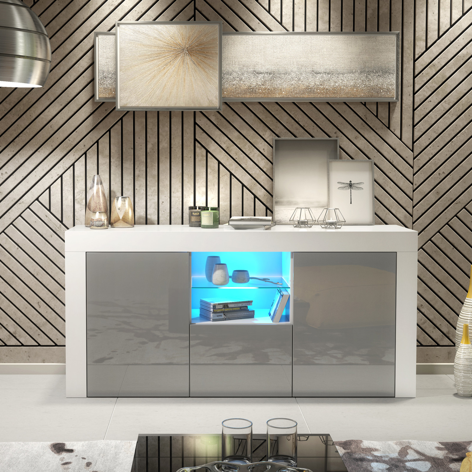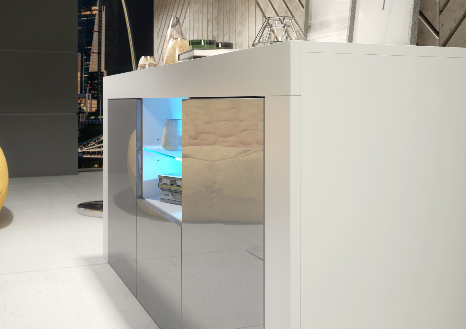 Modern 145cm TV Unit | White Matt Body & Grey High Gloss Doors | Free LED Light