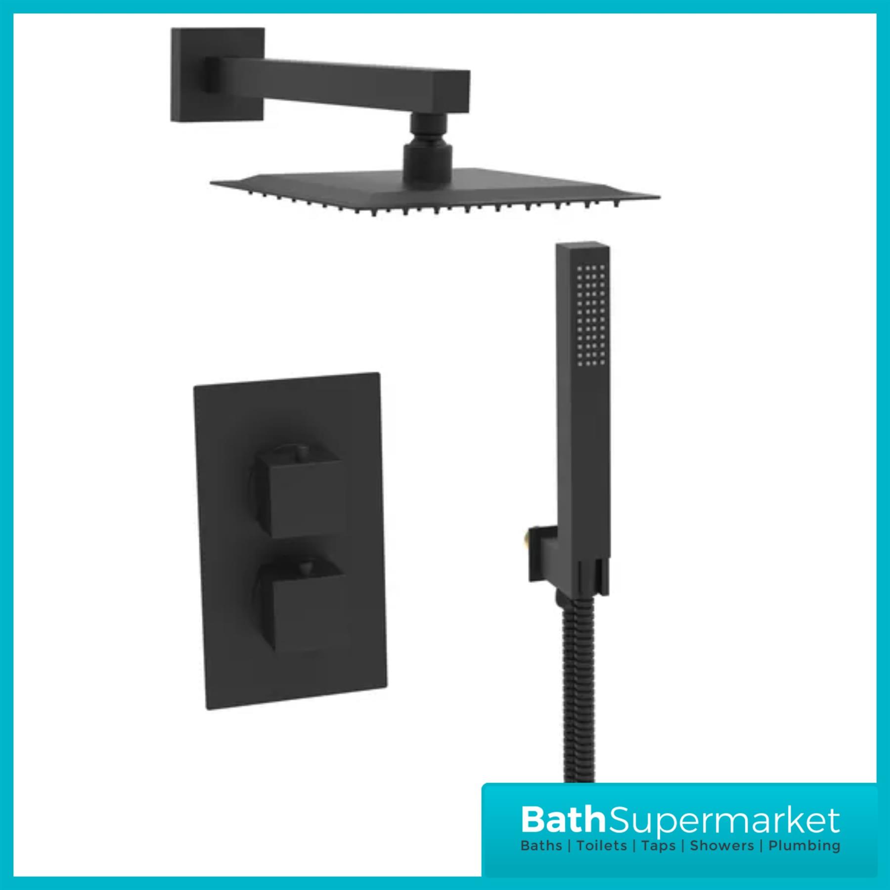 Black 2 Outlet Wall Mounted Thermostatic Mixer Shower Set BUN/BeBa_27181/78072