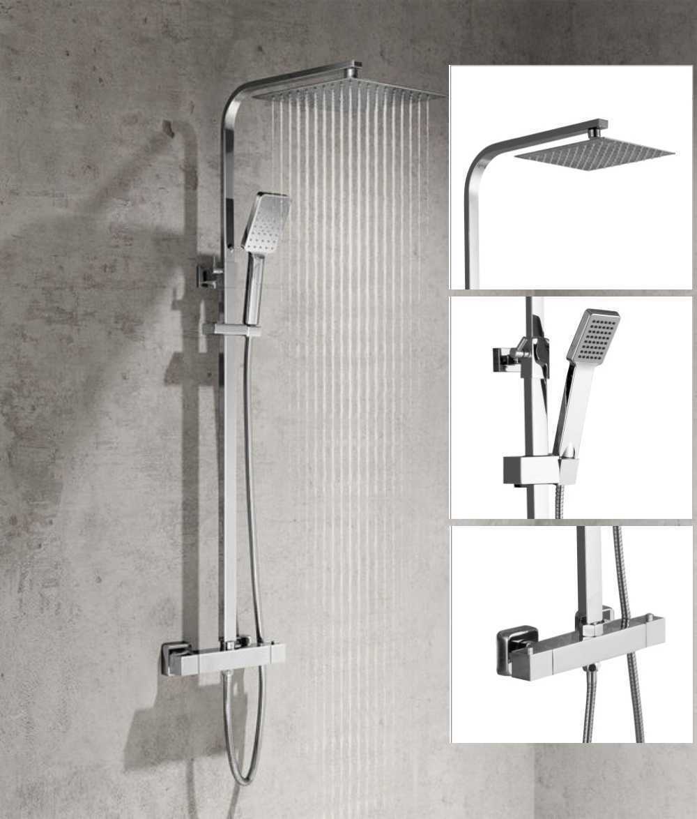 Biubiubath - Bathroom Square Chrome Thermostatic Mixer Shower Dual Head Rainfall Head Handset