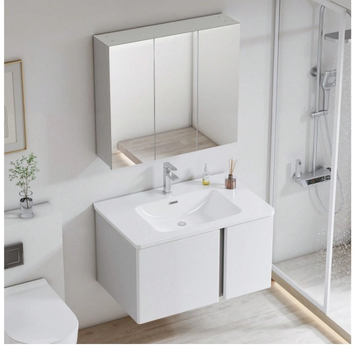 Bathroom Cabinet Triple Door Wall Mount Mirror Storage Cupboard Stainless Steel