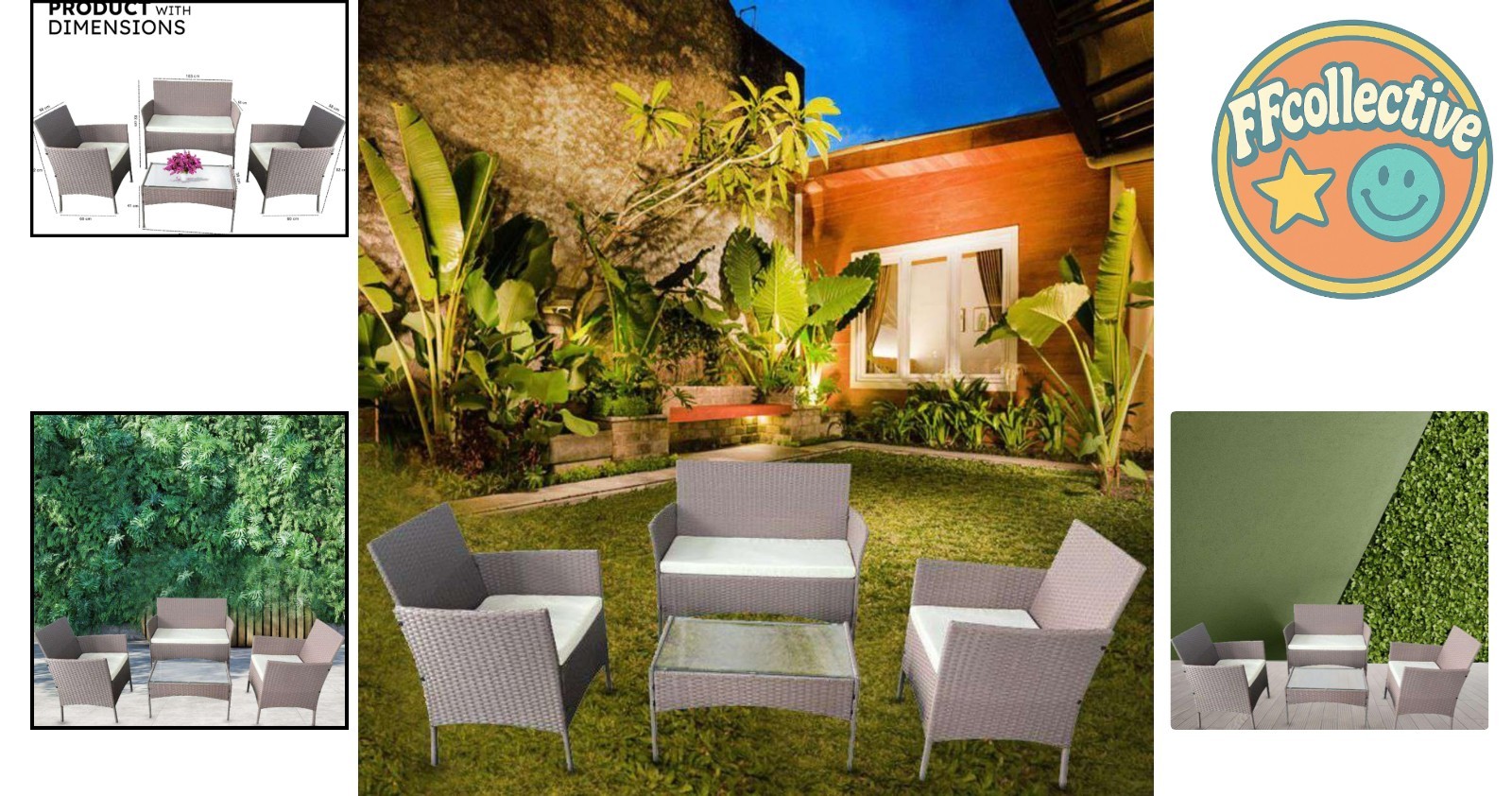 Modern 4-Piece Rattan Furniture Set with Cushions - Perfect for -Round Use
