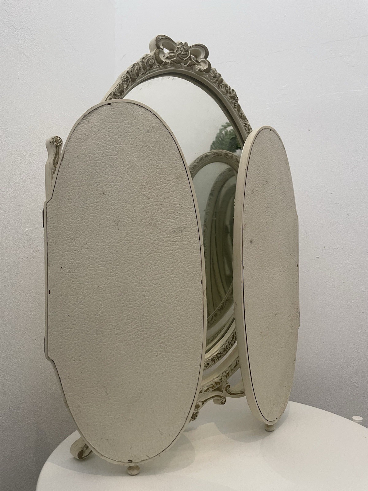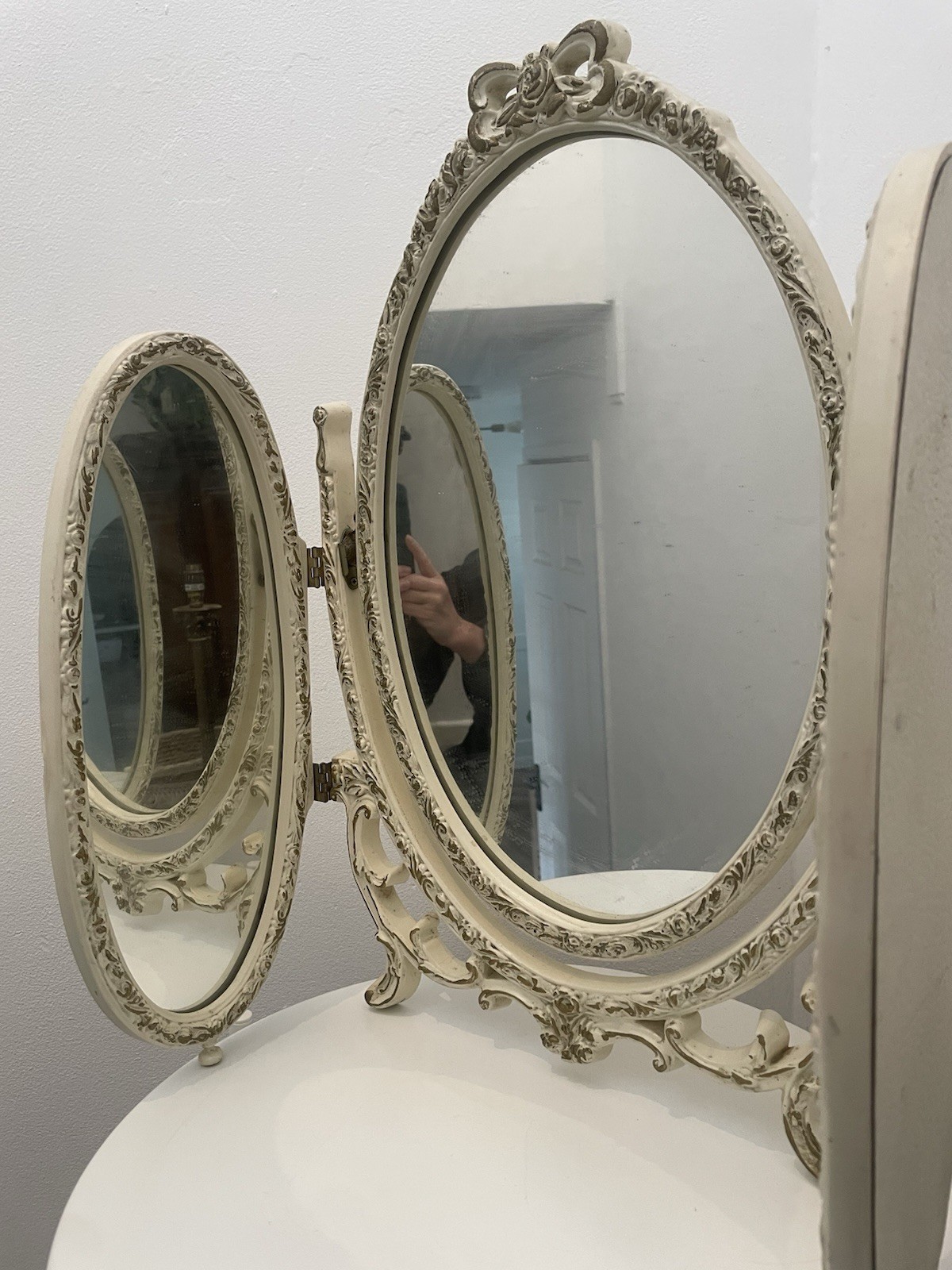 Gainsborough 3-Way Mirror. Vintage Cream Dressing Table Mirror, Wooden Frame