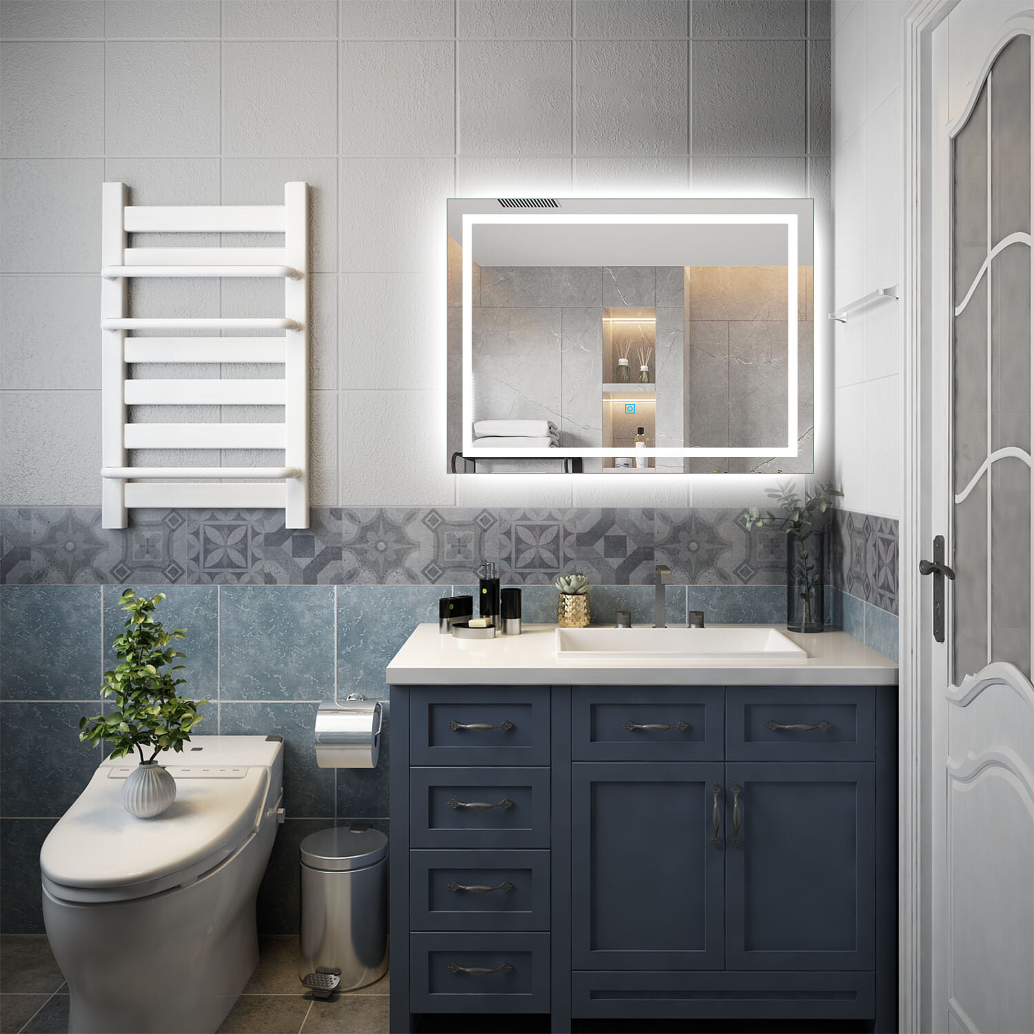 Large Size Bathroom Mirror LED Light Anti Mist Wall lighted Mirror with Demister