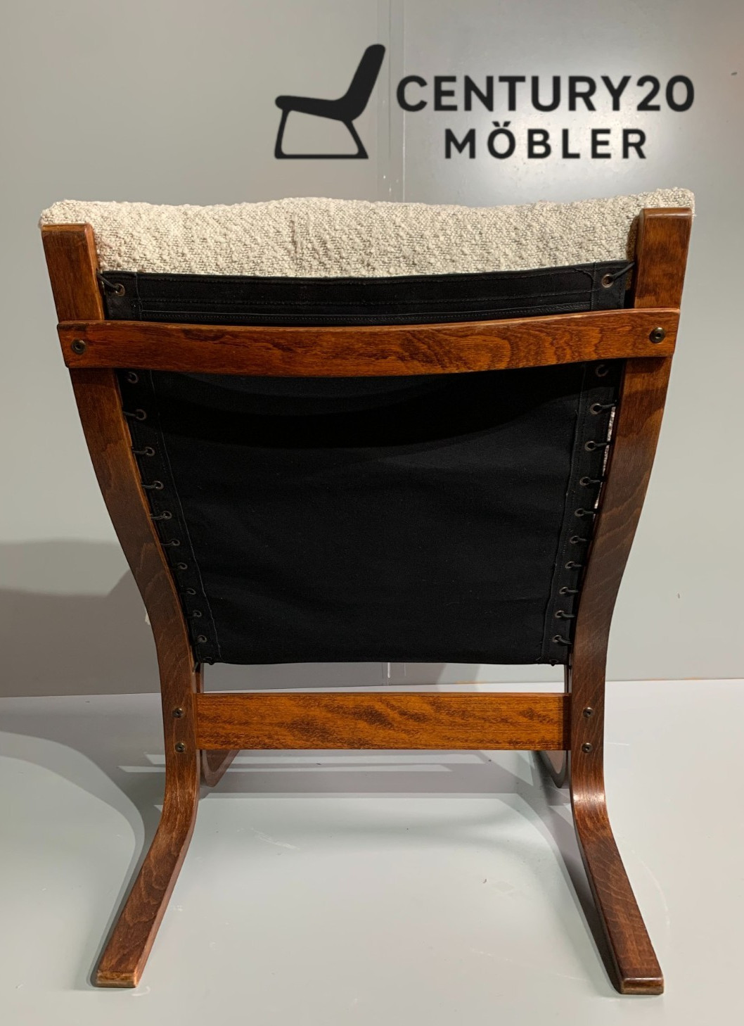 An authentic mid-century piece designed by Ingmar Relling and produced by Westnofa, Norway, c.1970s. Ingmar Relling for Westnofa “Low Back” Chair – Original. Canvas: Replaced. Fabric: Renewed Upholstery.