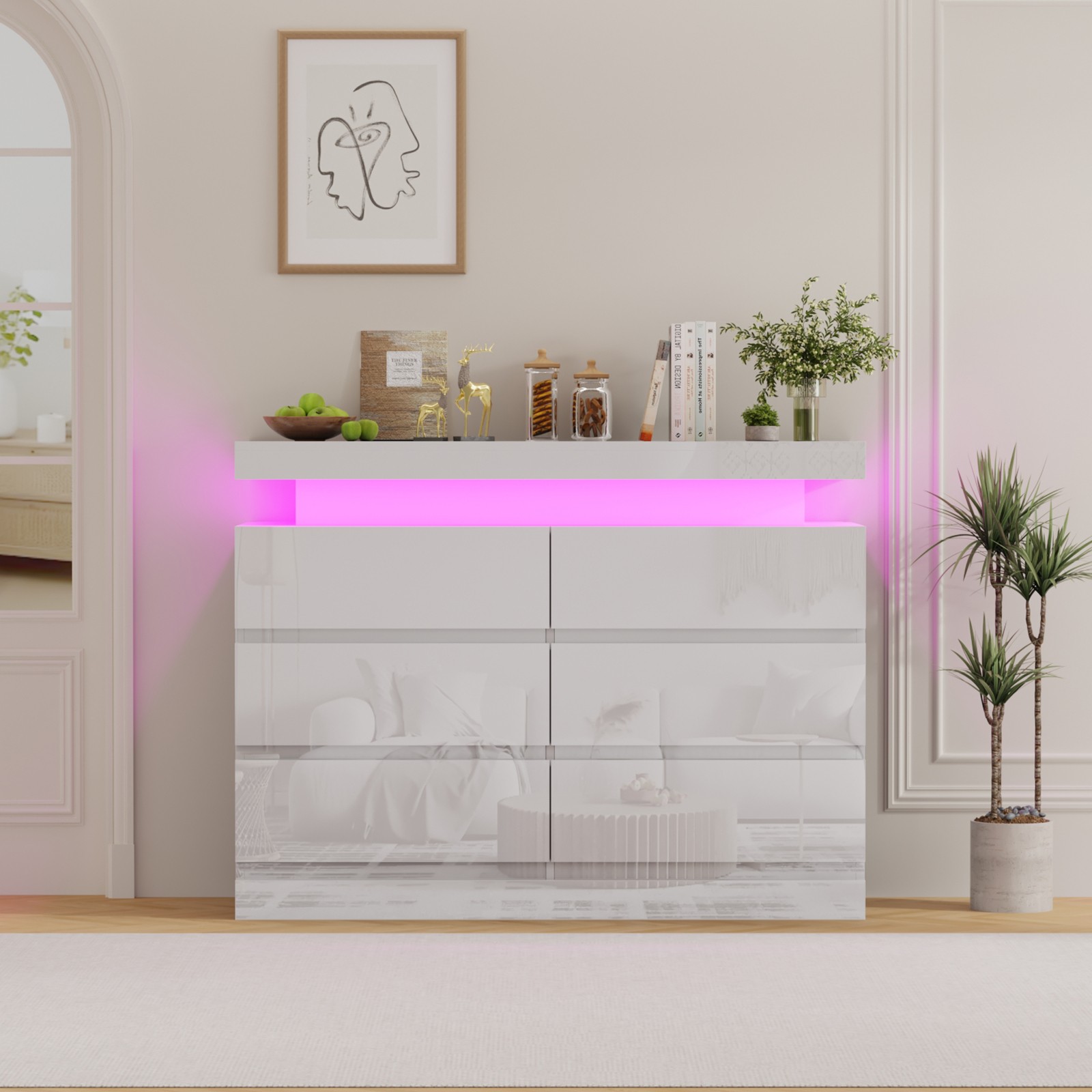 6 Drawer Chest of Drawers Sideboard with LED Storage Cabinet High Gloss White