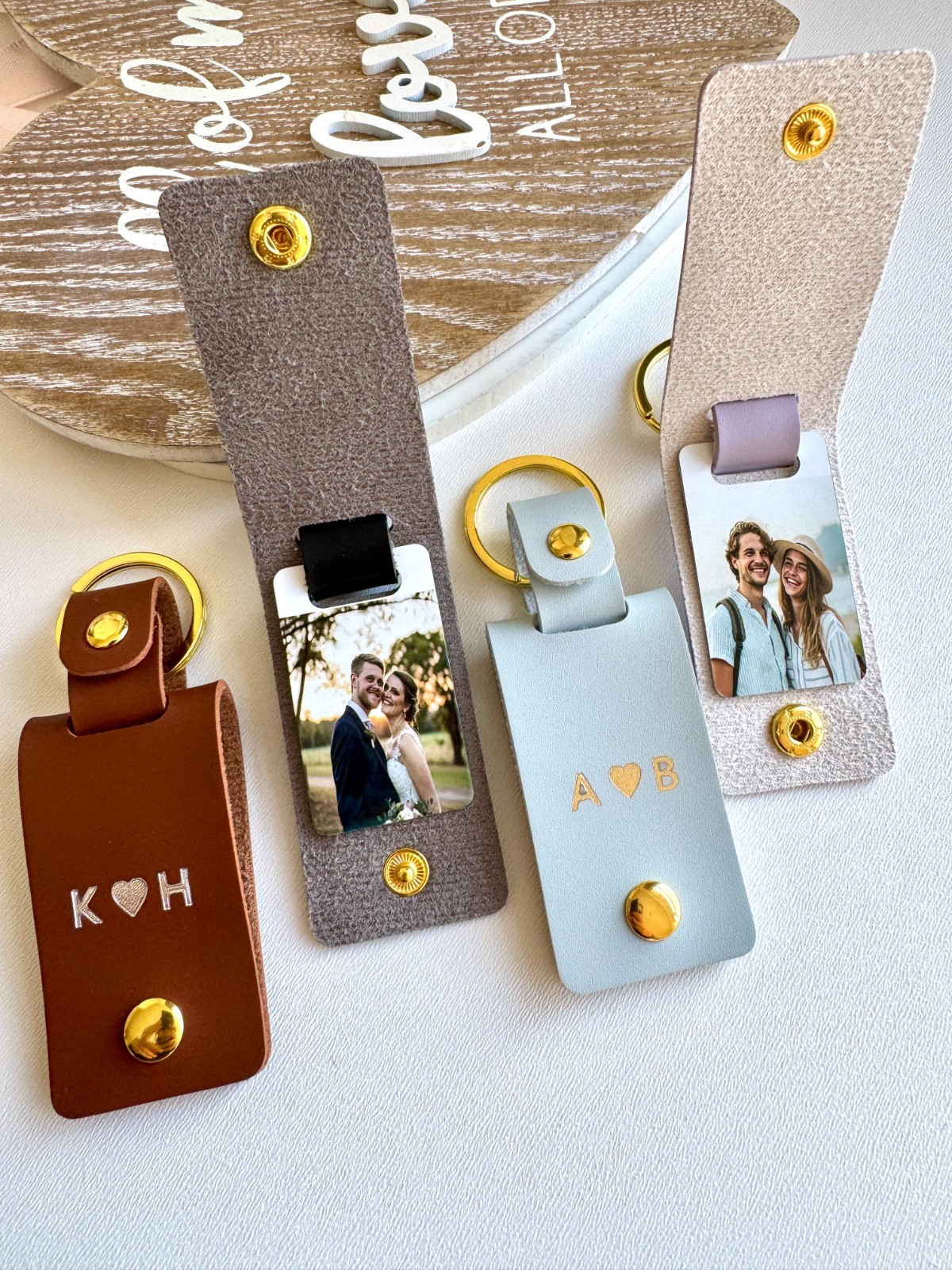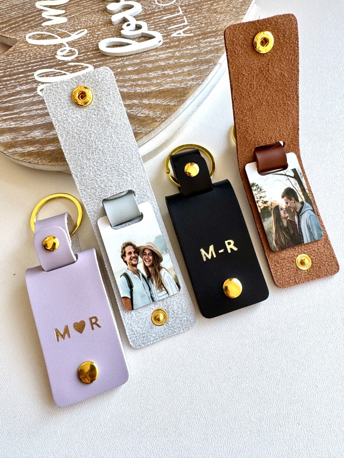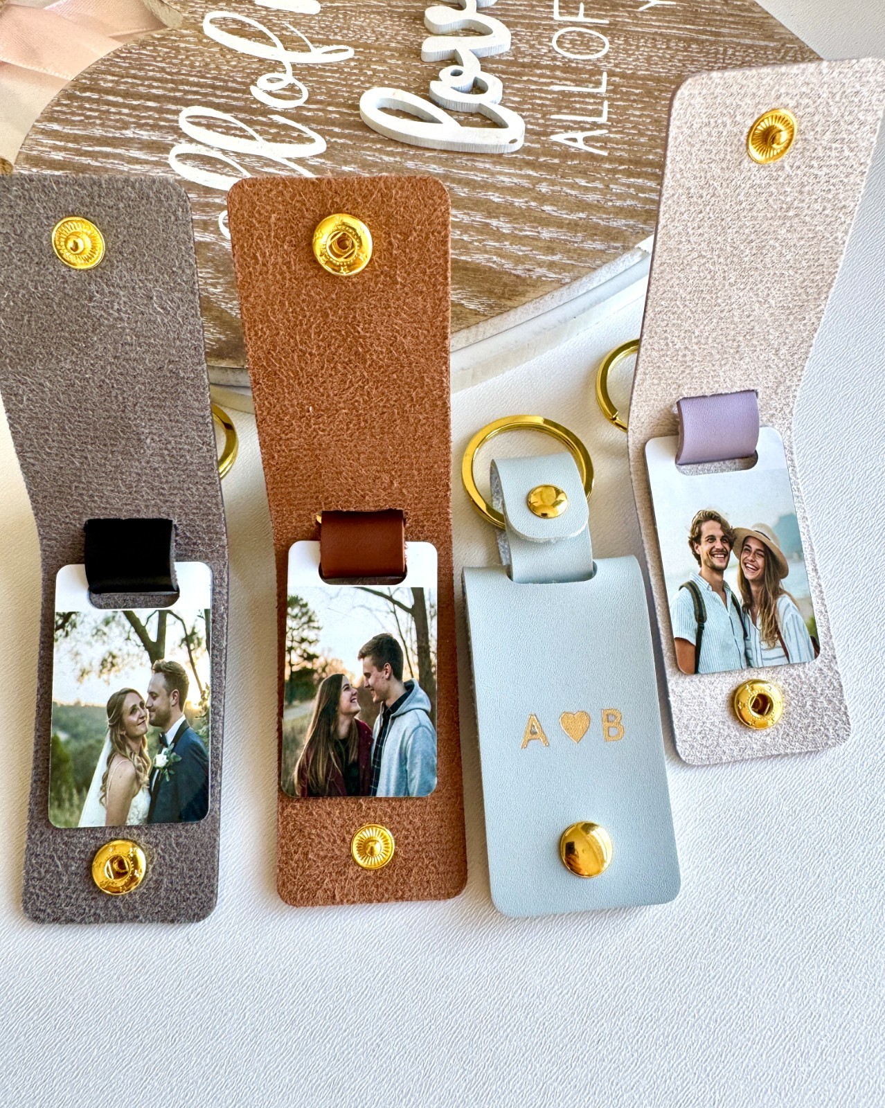 Custom Leather Photo Keychain, Personalized Double Side Picture Keychain, Beige