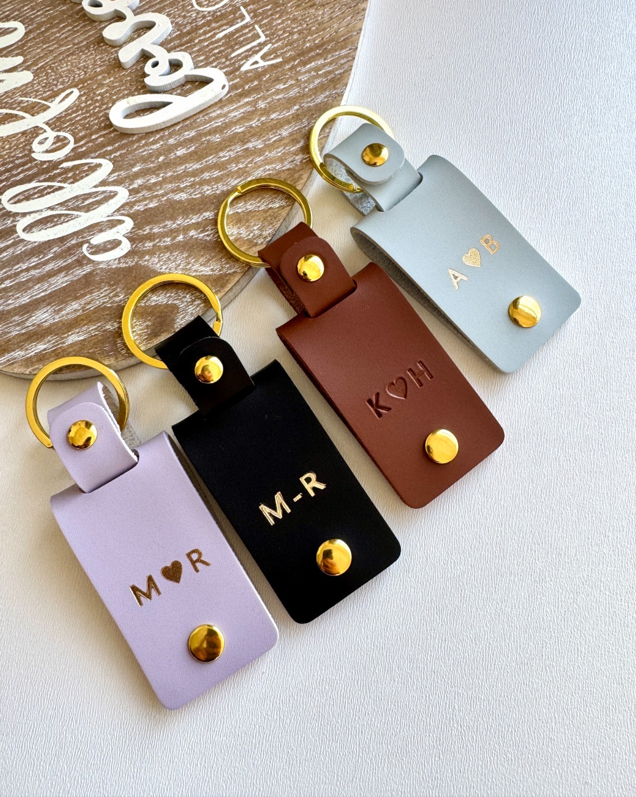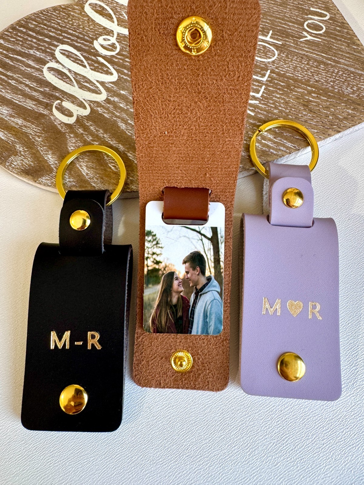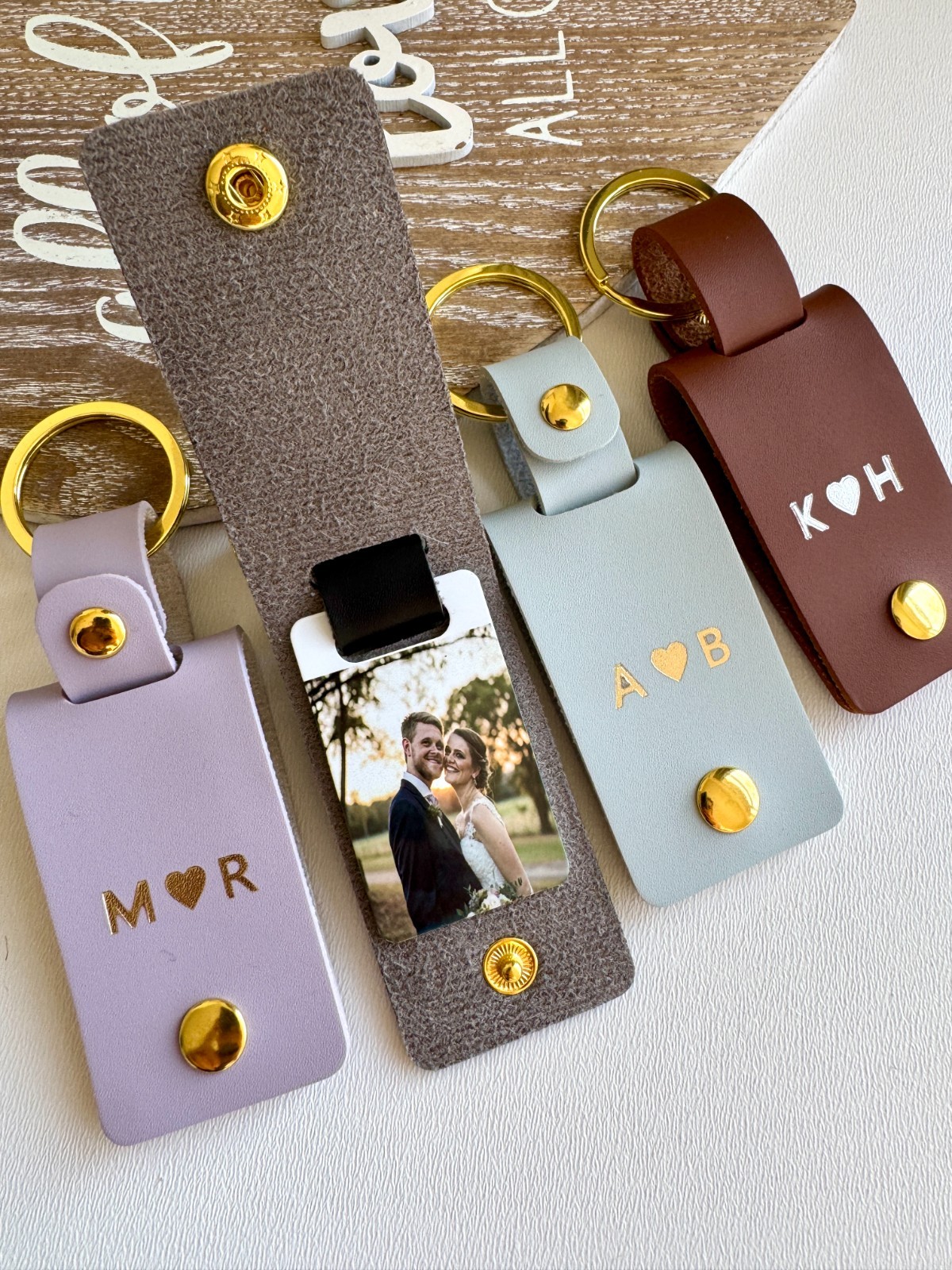 Custom Leather Photo Keychain, Personalized Double Side Picture Keychain, Beige