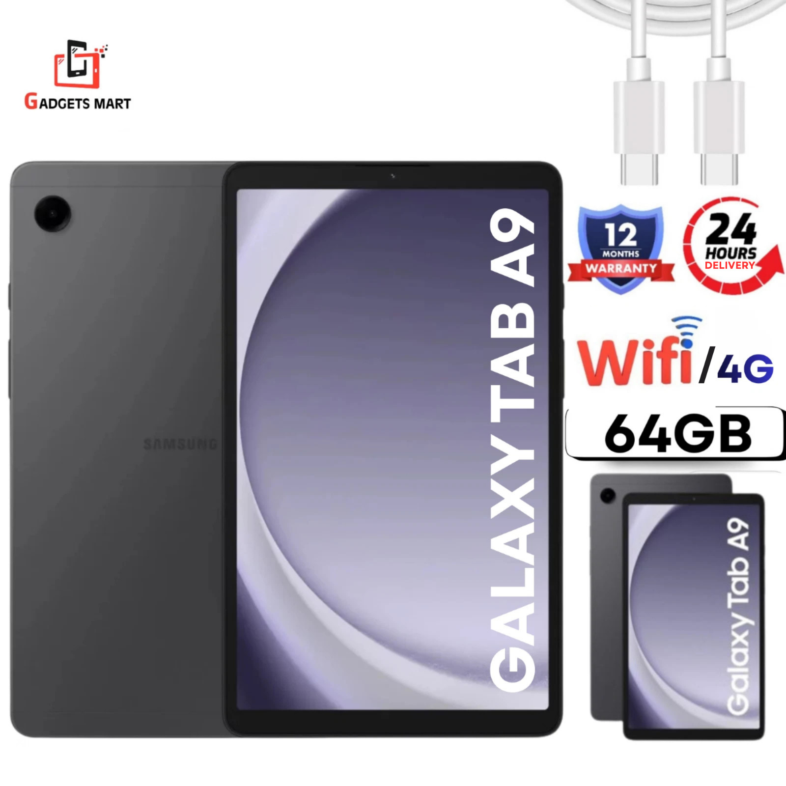 SAMSUNG Galaxy Tab A9, 4GB RAM, 64GB Storage, Wi-Fi, Graphite, Android Tablet, New