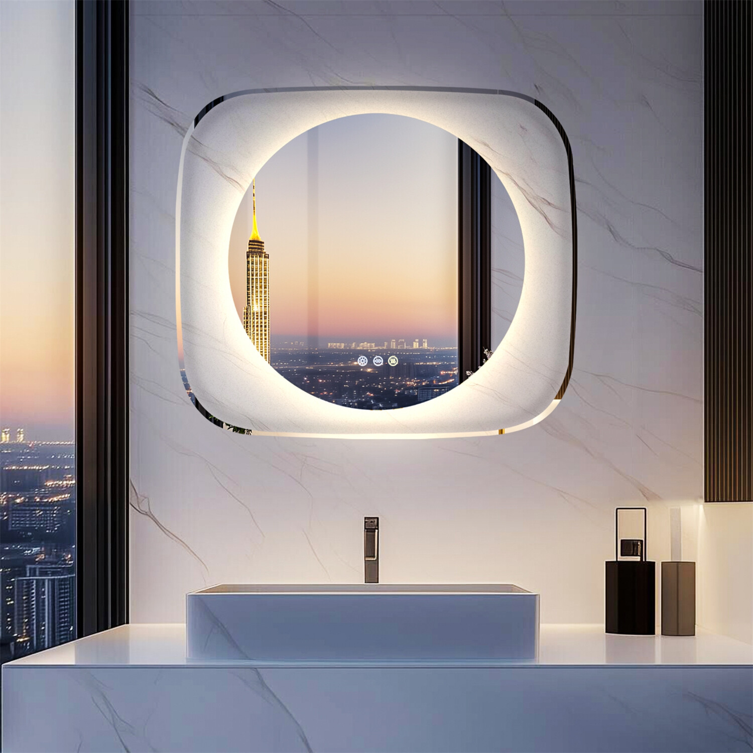 Round Oval Wall Mounted LED Bathroom Mirror with Lights Illuminated Demister Pad