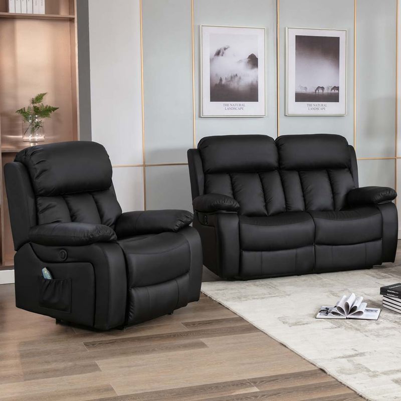 More4Homes Chester Electric Recliner Bonded Leather 2+3 Seater Sofa Set in Black Black