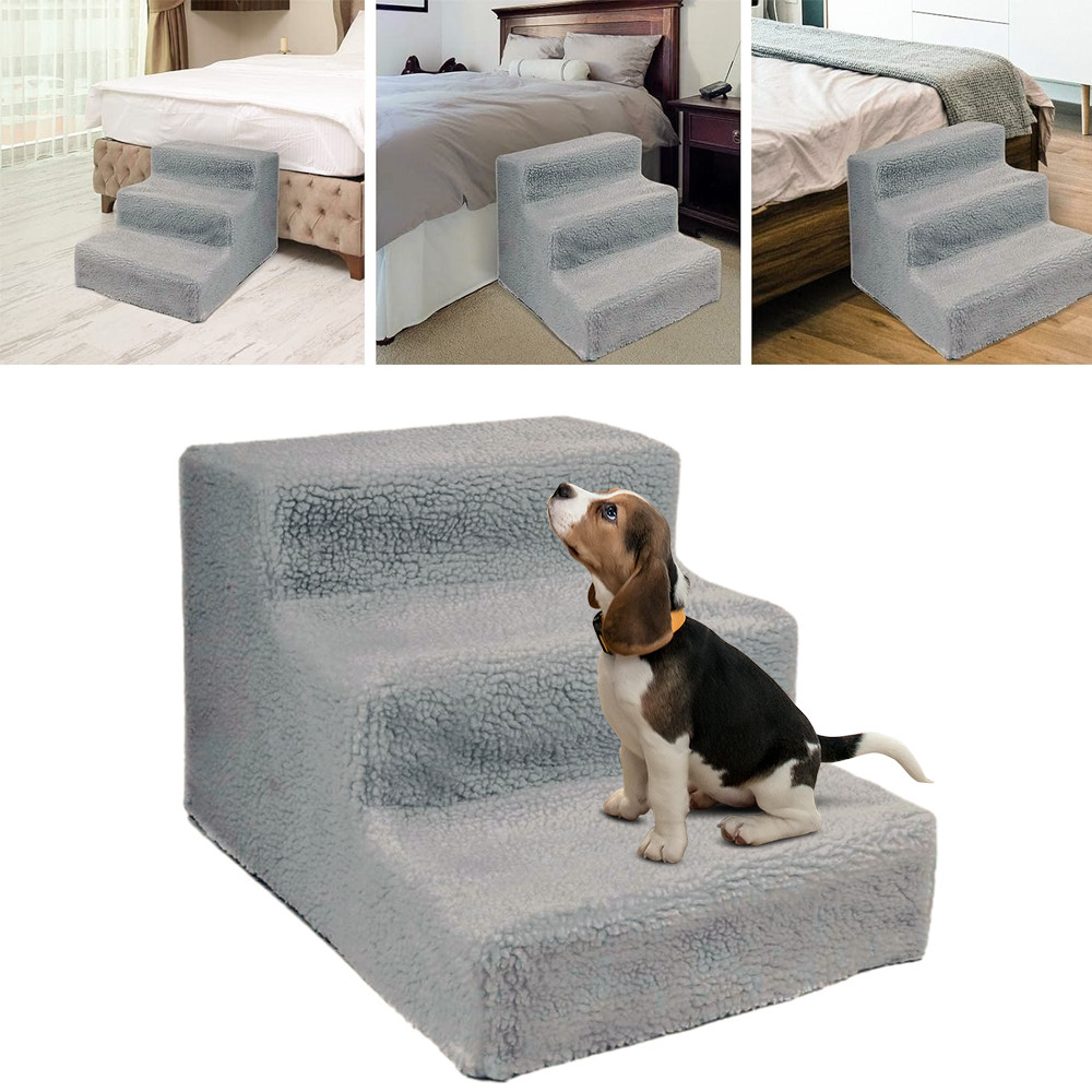 3 Steps Dog Stairs Pet Steps For Bed Sofa Cats Ladder Ramp with Removable Cover