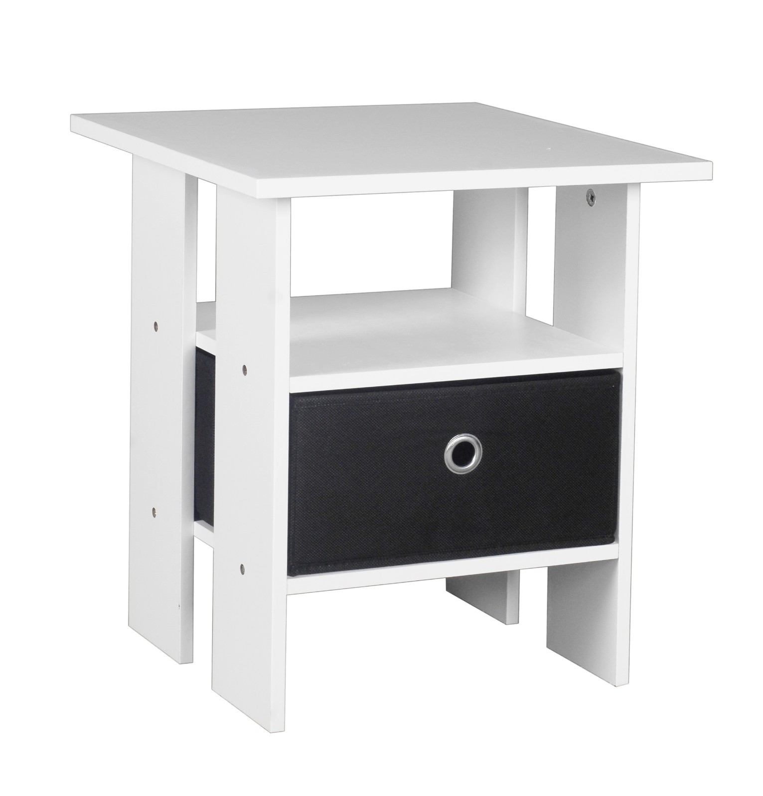 2-Tier Bedside Table White MDF Wooden Small Nightstand Storage Shelf Living Room