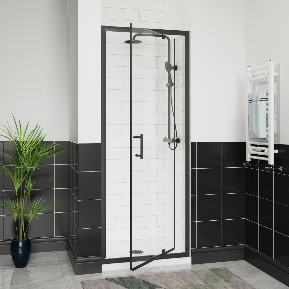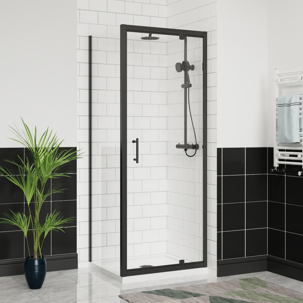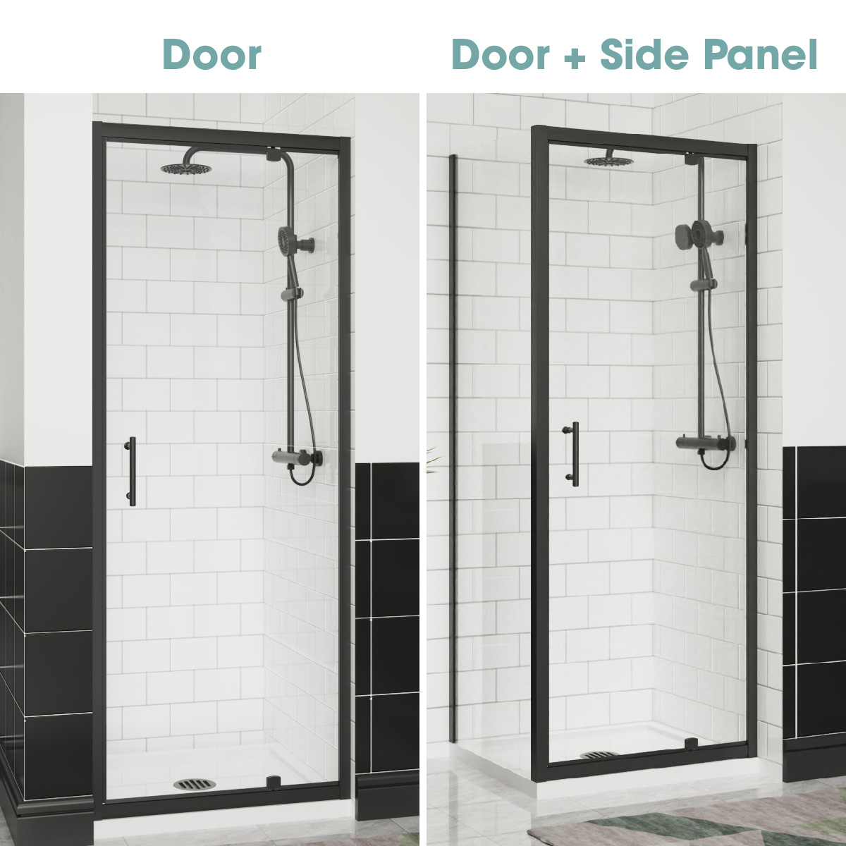 Matt Black Sliding/Pivot Shower Door Tray Walk In Enclosure Glass Screen Cubicle