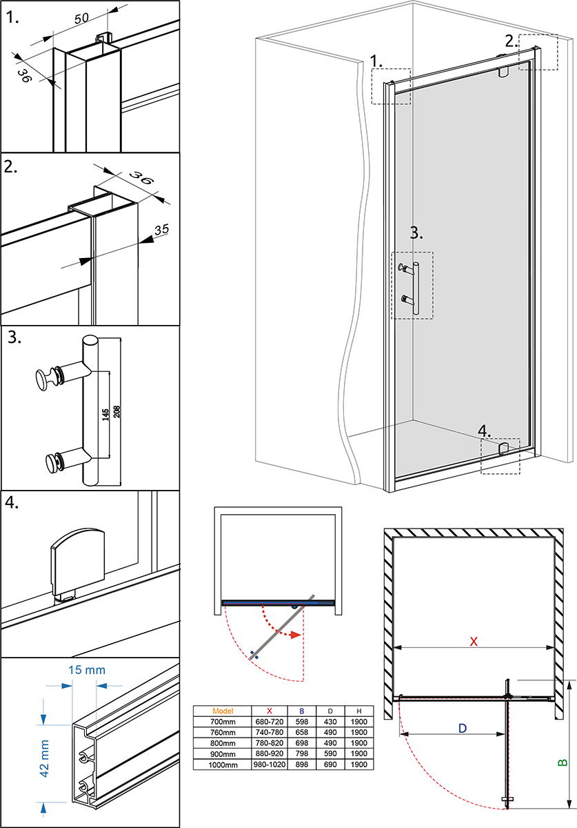 Hinged/Sliding/Bi Fold/Pivot Shower Door and Tray Enclosure Glass Screen Cubicle