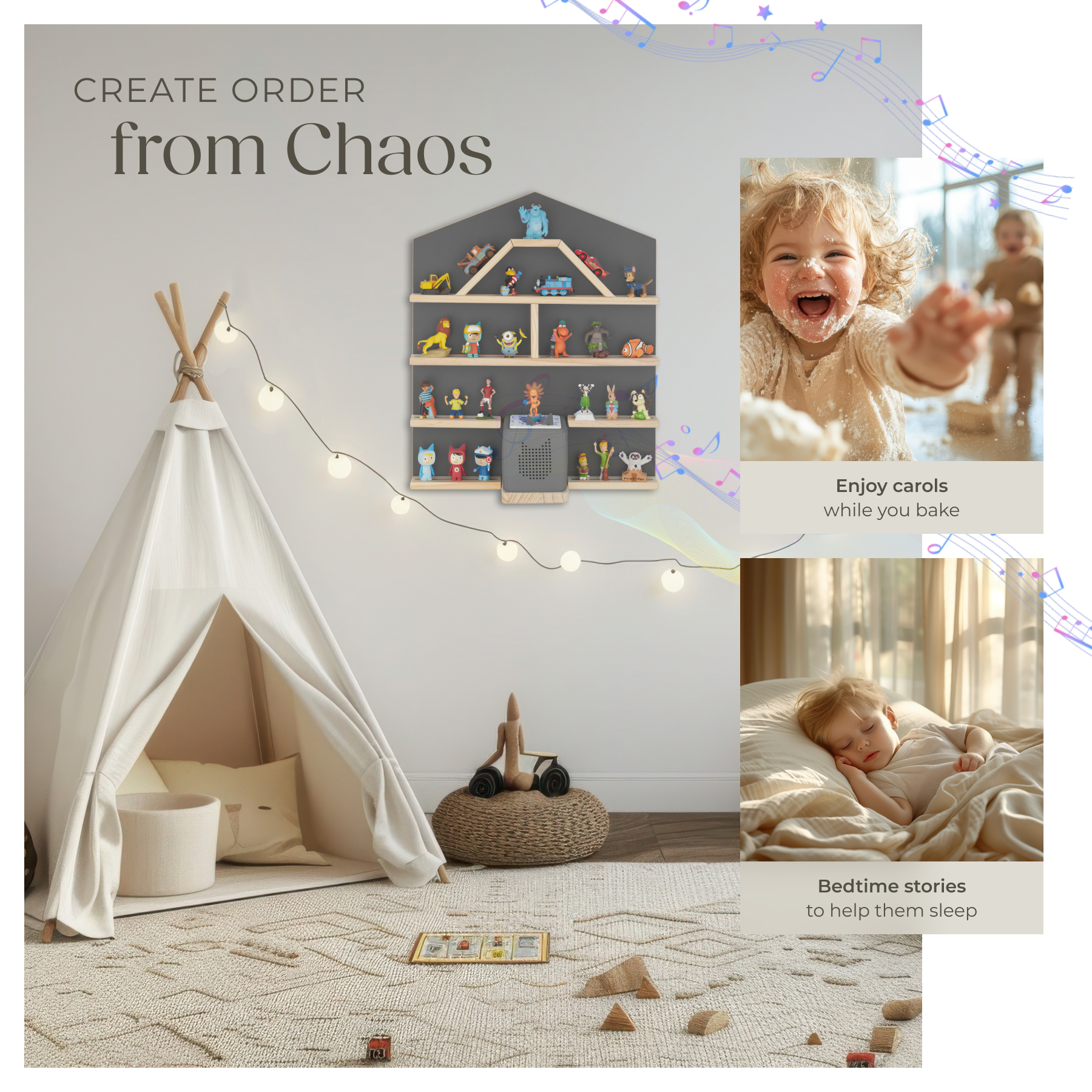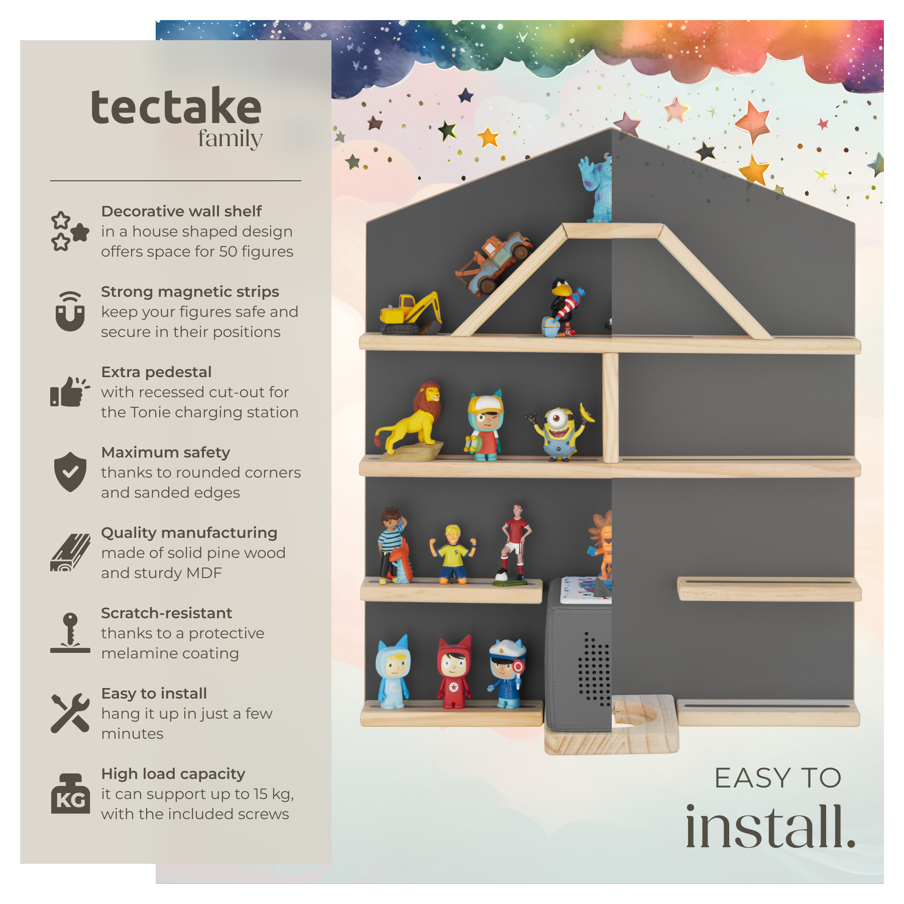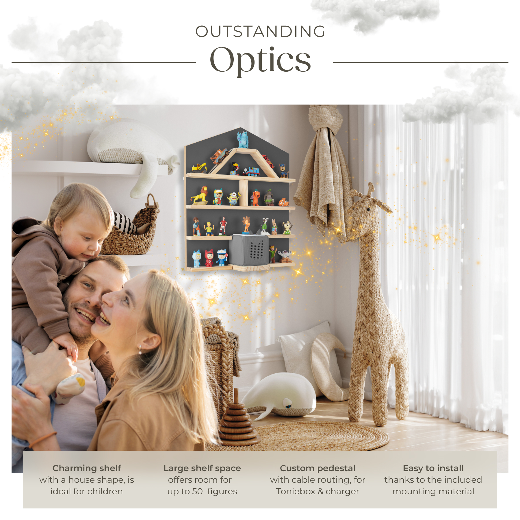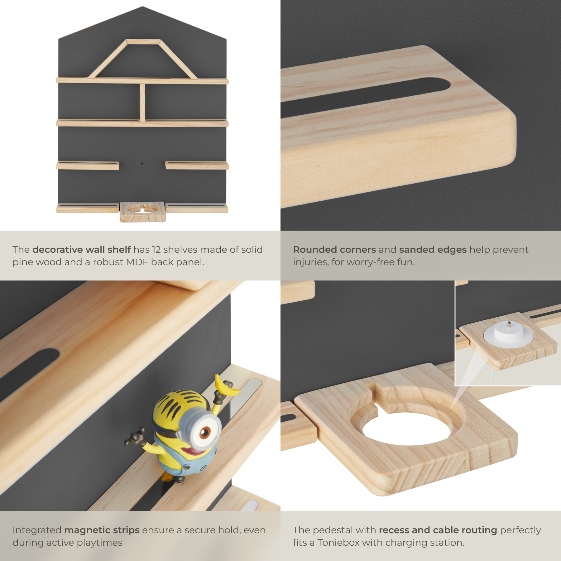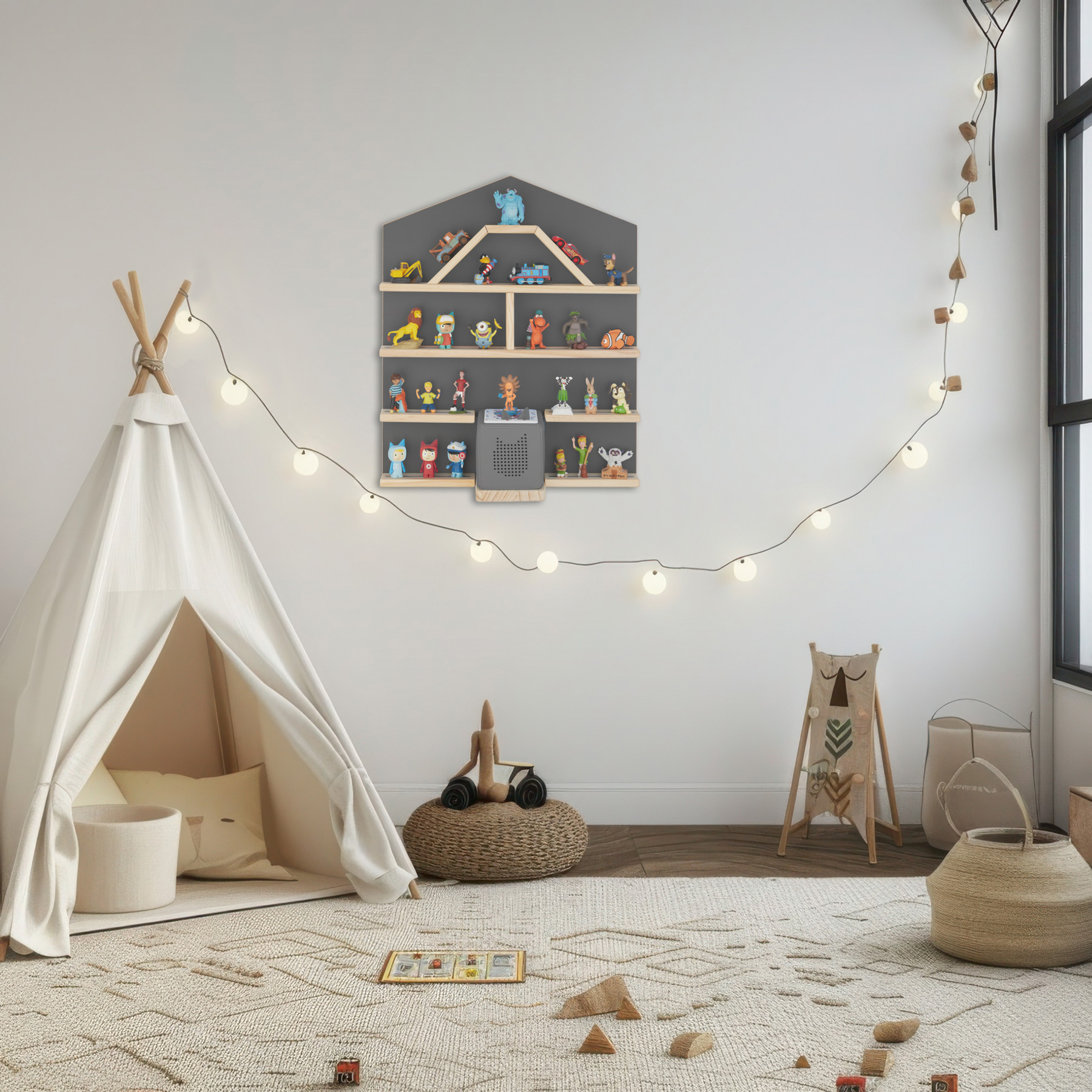 Create the perfect space for your child’s Tonies characters with the Floating Shelf MyLittle Story, designed to hold up to 50 Tonies in a charming house-design. This versatile Tonie shelf combines practicality and style, making it an essential piece for bedroom decor and nursery shelves.