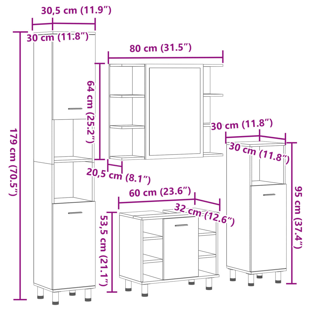 vidaXL 4 Piece Bathroom Furniture Set Sonoma Oak Engineered Wood