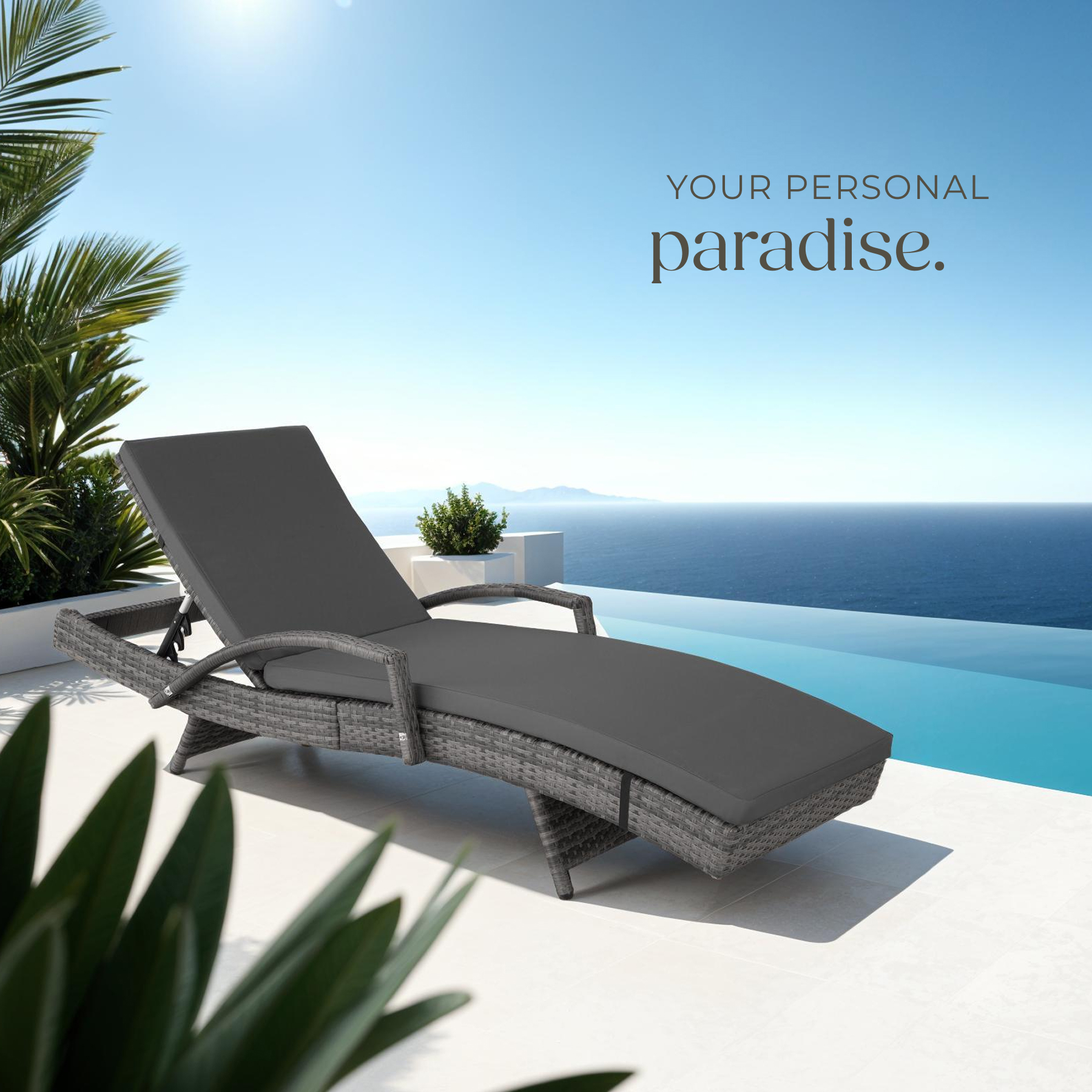 Rattan Sun Lounger with Adjustable Backrest & Retractable Footrest