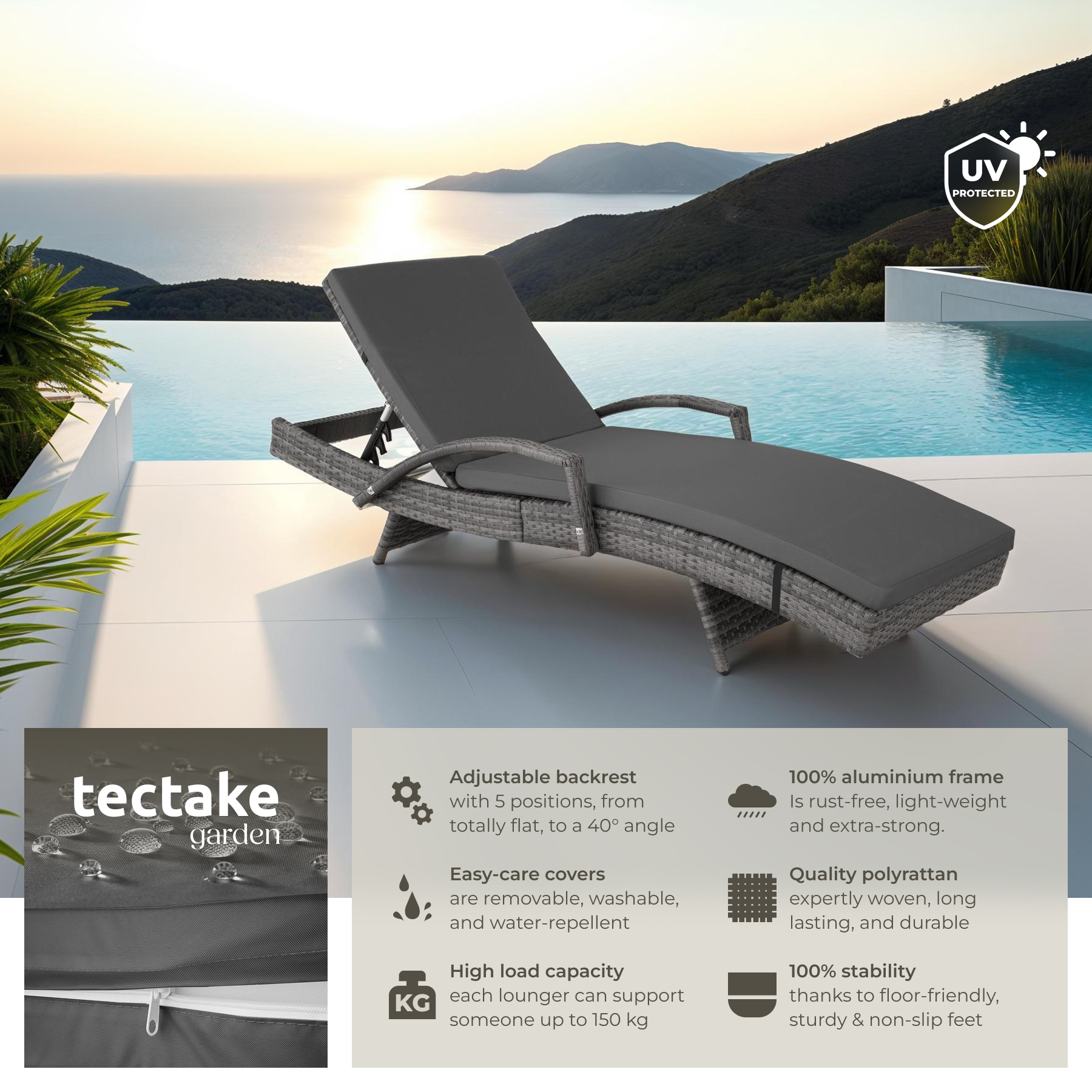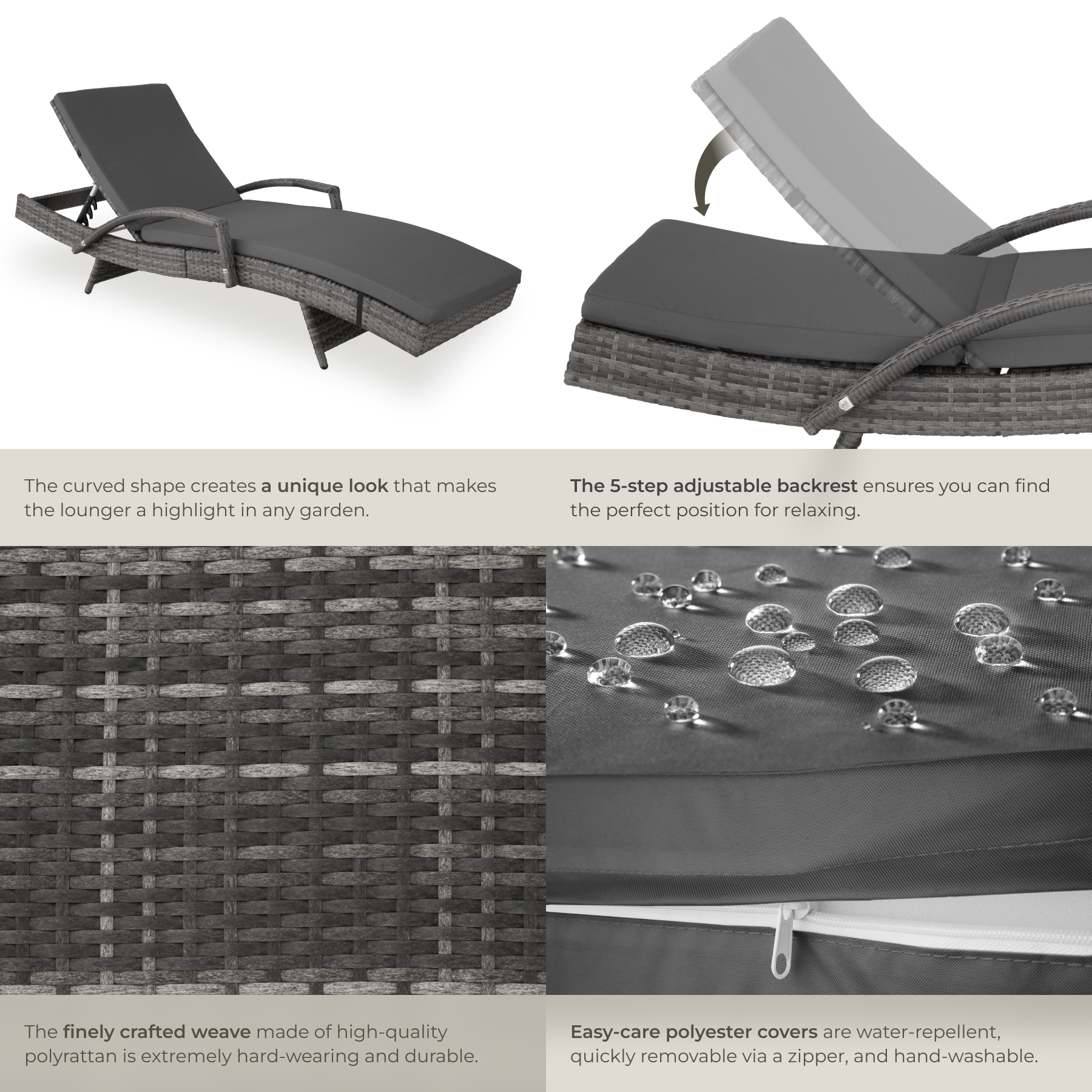 Beliani - Outdoor Chaise Lounge pe Rattan Aluminium Cushion Padding Adjustable Backrest Dark Grey Osini