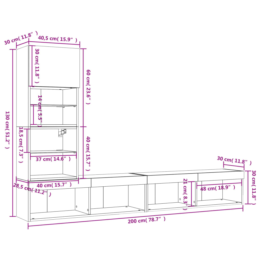 TV Wall Units 4 Piece with LED Floating TV Cabinet Engineered Wood vidaXL
