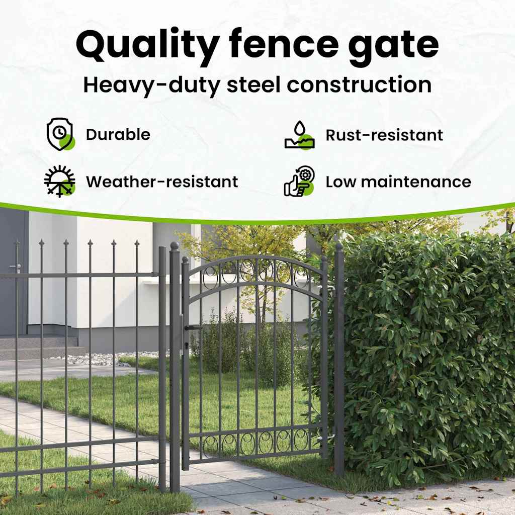 Fence Gate Single Door with Arched/Spike Top Steel Black Multi Sizes vidaXL