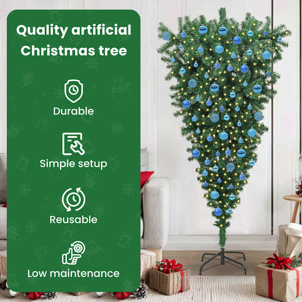 Upside-down Artificial Pre-lit Christmas Tree with Ball Set vidaXL