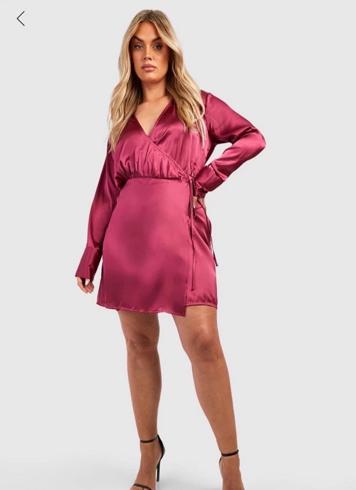 Boohoo Plus Wrap Tie Satin Mini Dress Size 16 Party Evening Cocktail