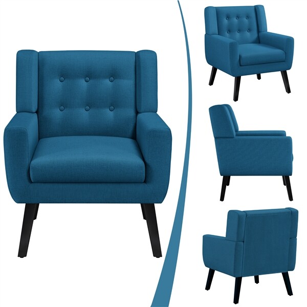 Button Tufted Armchair with Solid Wood Legs Accent Chair for Living Room