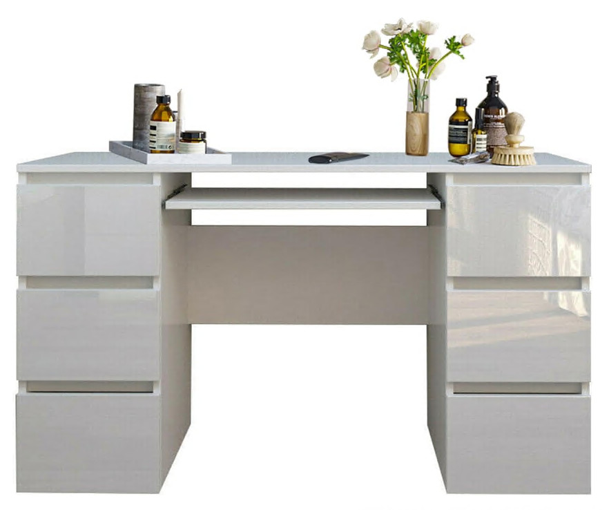 Full High Gloss Dressing Table 6 Drawers Vanity Makeup/Computer Table Desk