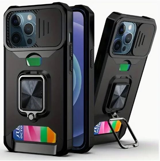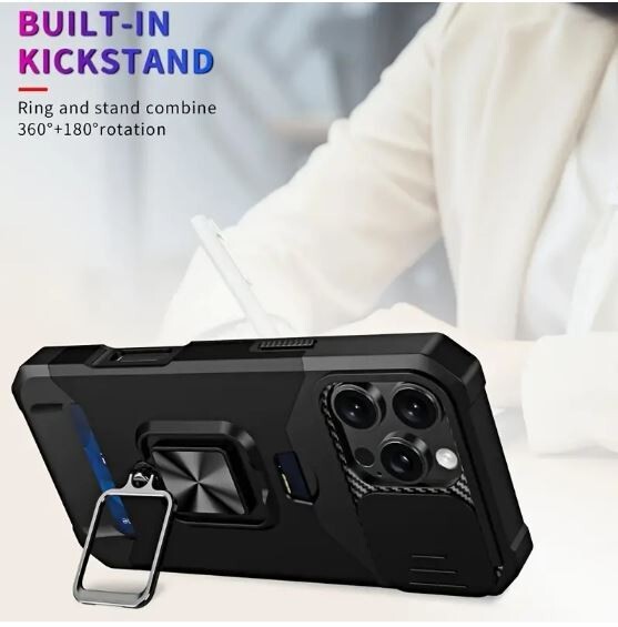 F iPhone Heavy Duty Magnetic Luxury Camera Cover Card Slot Shockproof Stand case