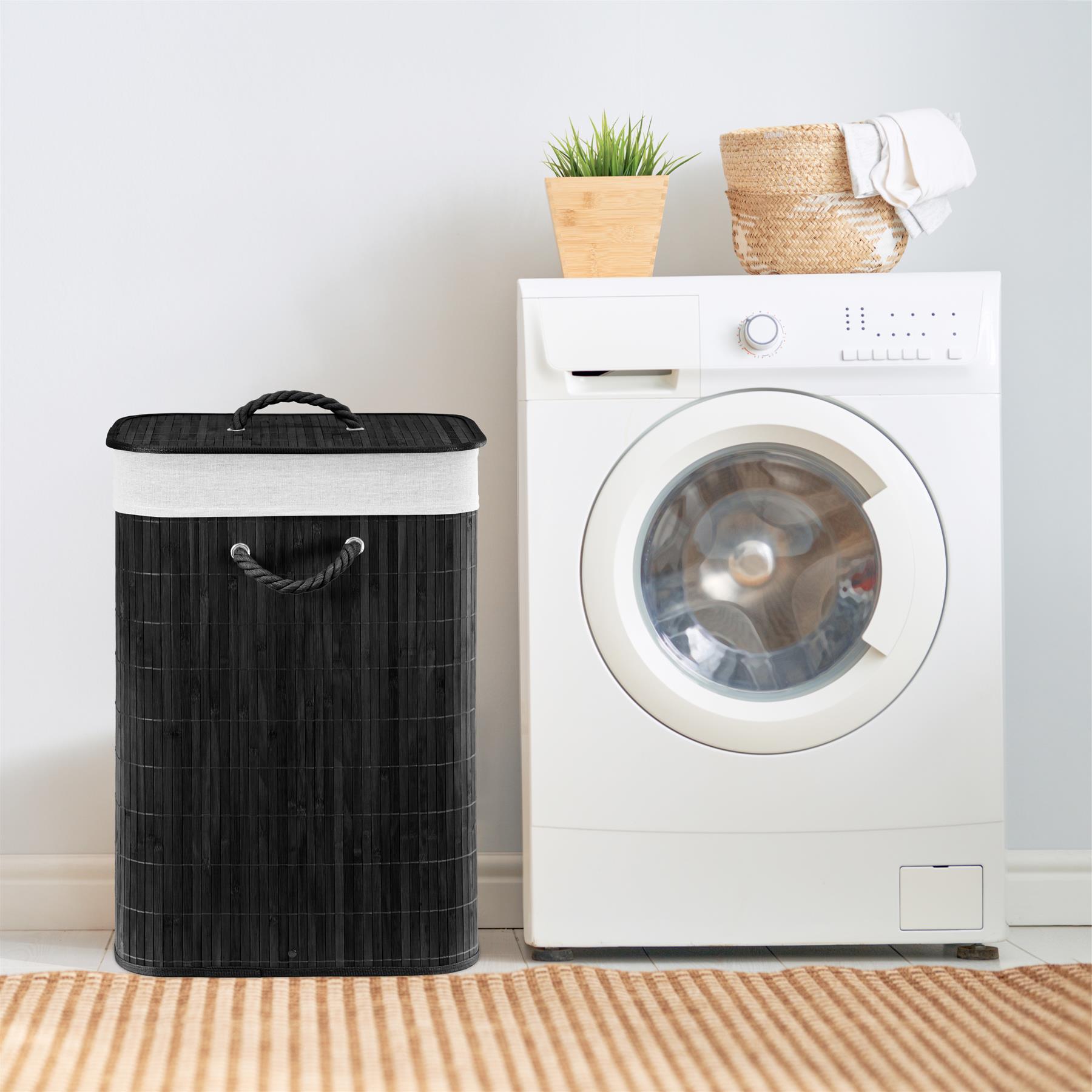 Crafted from bamboo and sturdy fabric, this laundry basket ensures long-lasting use. Its slim profile ensures minimal floor space usage. The removable fabric liner bag is machine washable, making it simple to keep your laundry basket clean and fresh.