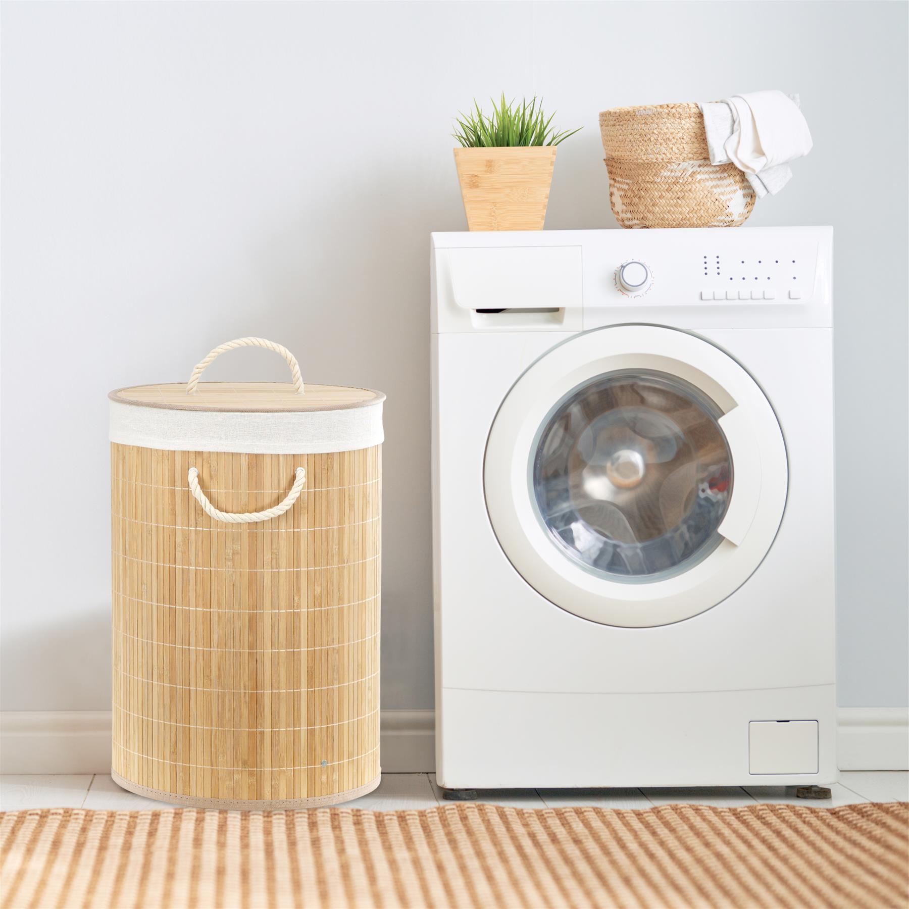 Bamboo Laundry Basket With Lid Foldable Washing Clothes Hamper Removable Bag 66L