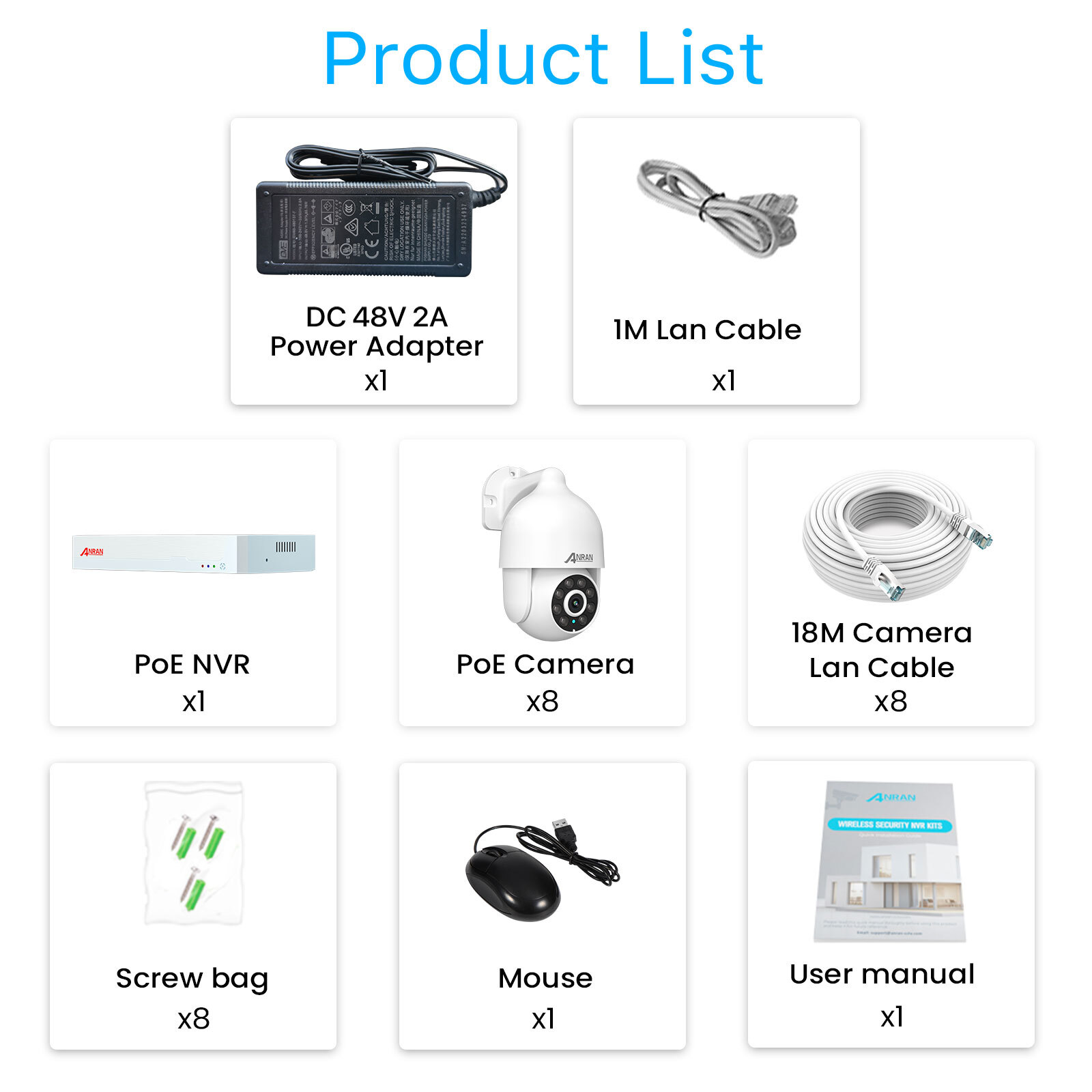 ANRAN CCTV 5MP Security Camera System 8CH HD NVR Home Surveillance Outdoor POE
