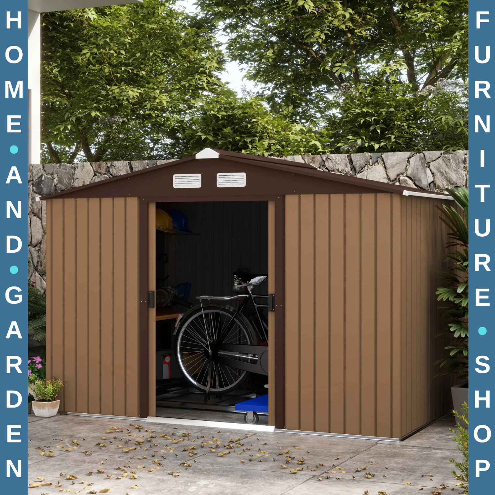 Galvanised Steel Garden Shed 9 x 6FT Garden Storage Shed Sliding Door Tool Hut