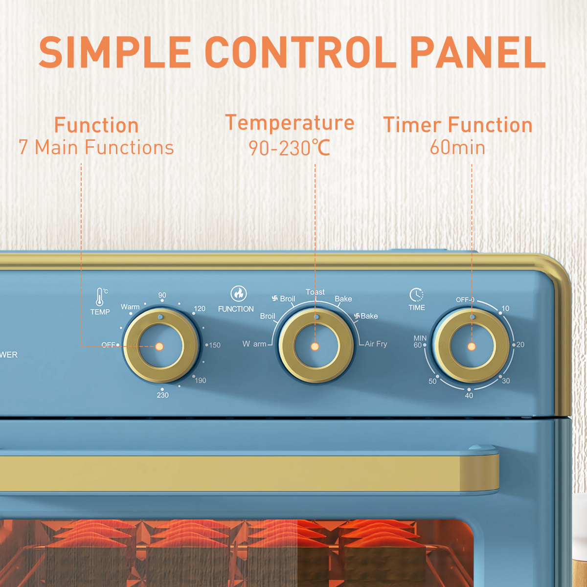 20L Mini Oven with Adjustable Temperature, 60 Min Time 1400W, Blue - Homcom