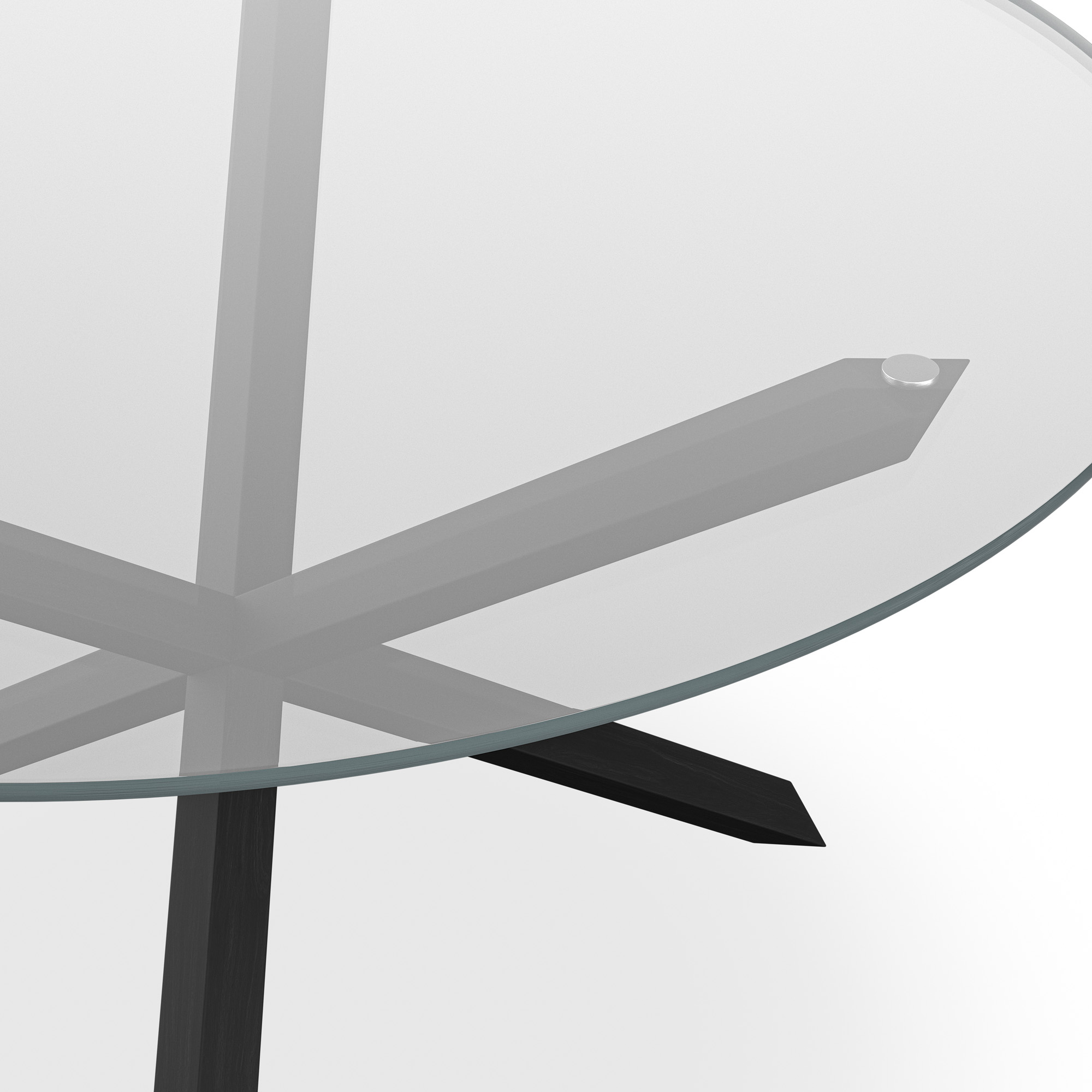 MALVERN ROUND DINING TABLE AND CHAIRS - GLASS TOP w OAK BLACK LEGS + NOVA CHAIR