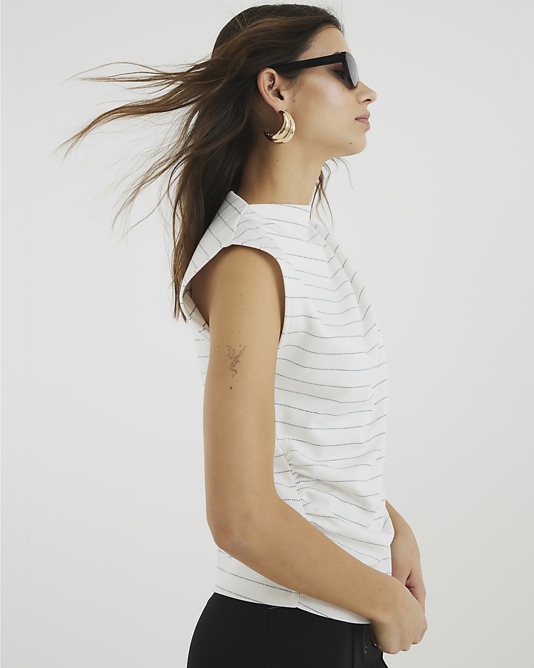 River Island Womens Drape Top Cream Polka Dot Asymmetric Neck Spot Print