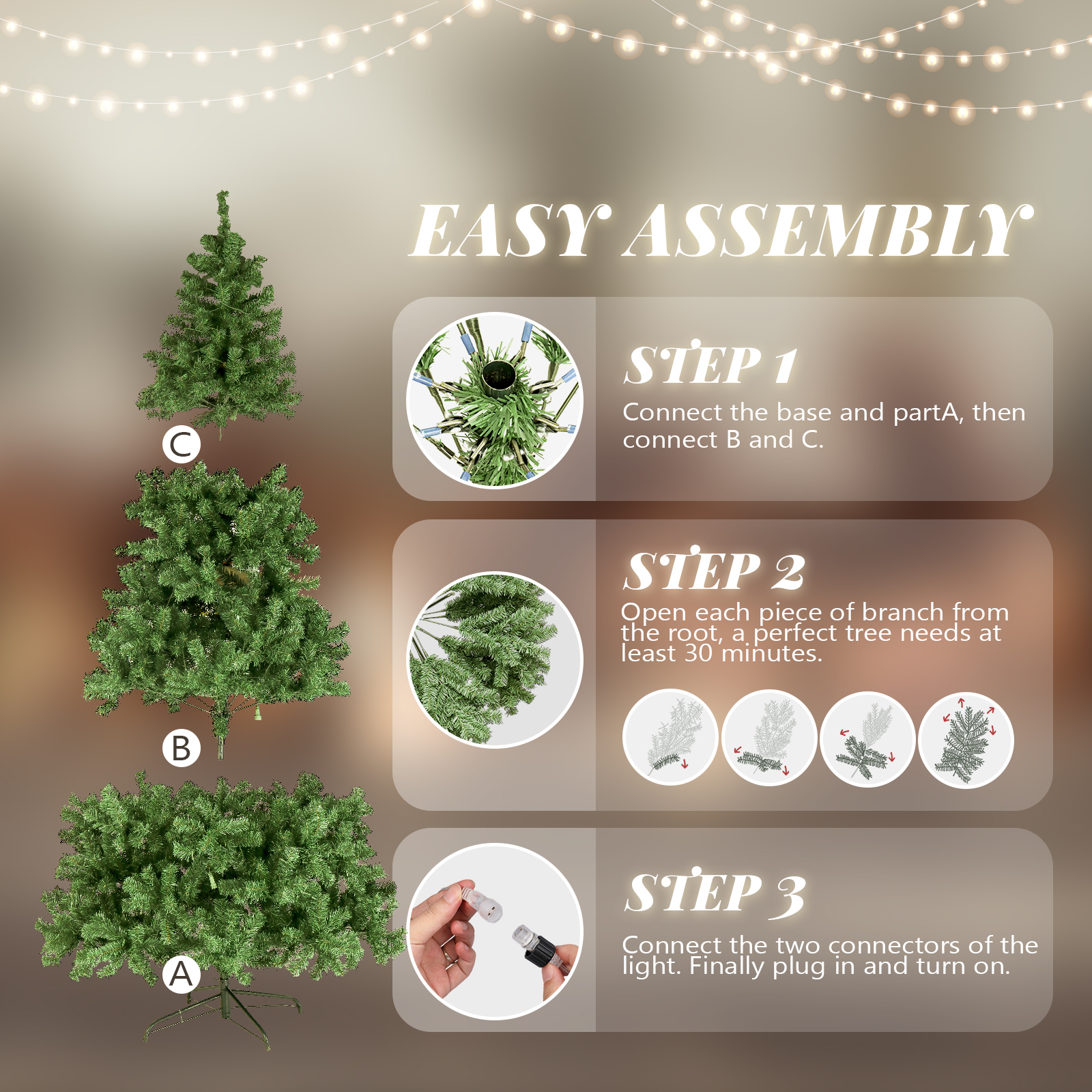 6FT (1.8M) Pre-Lit Artificial Christmas Tree with 200 LED Lights Holiday Decor