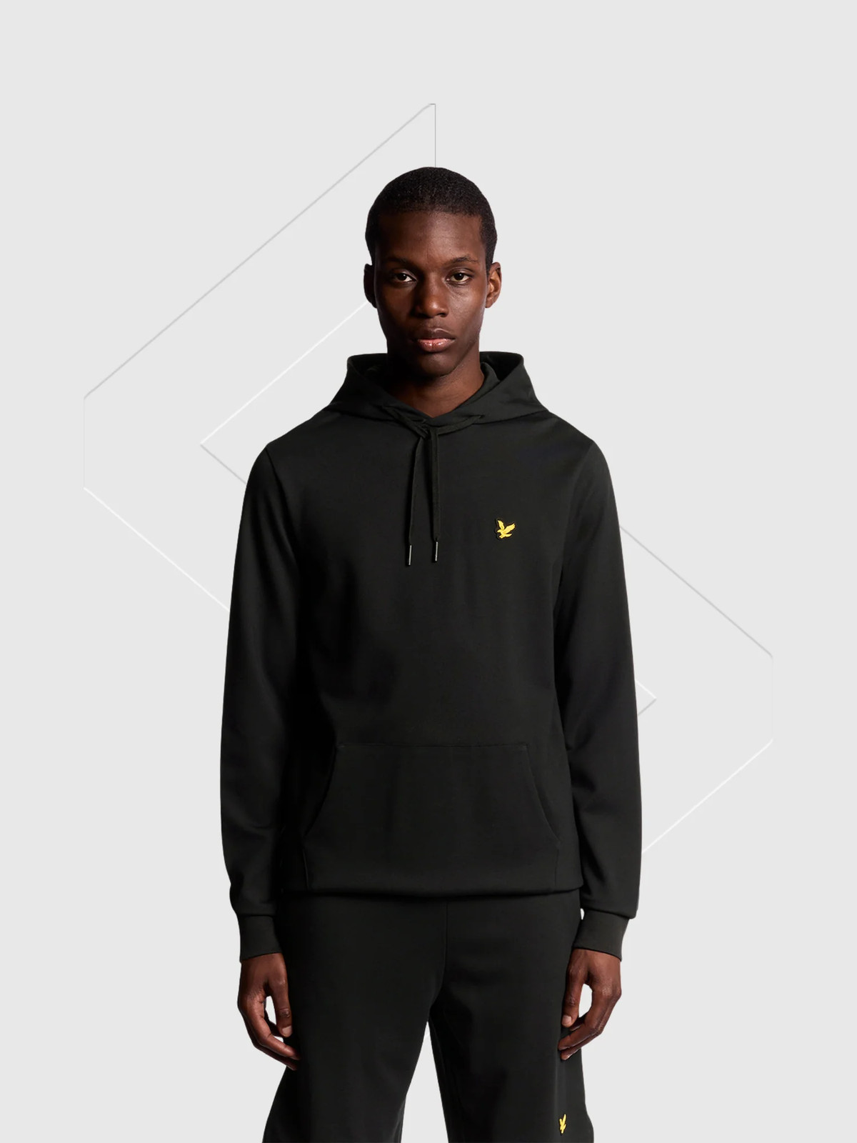 Lyle & Scott Fly Fleece Hoodie. The classic pullover design is finished with a drawstring hood, ribbed cuffs and hem, and a spacious kangaroo pocket for practicality. Signature Lyle & Scott golden eagle logo on chest.
